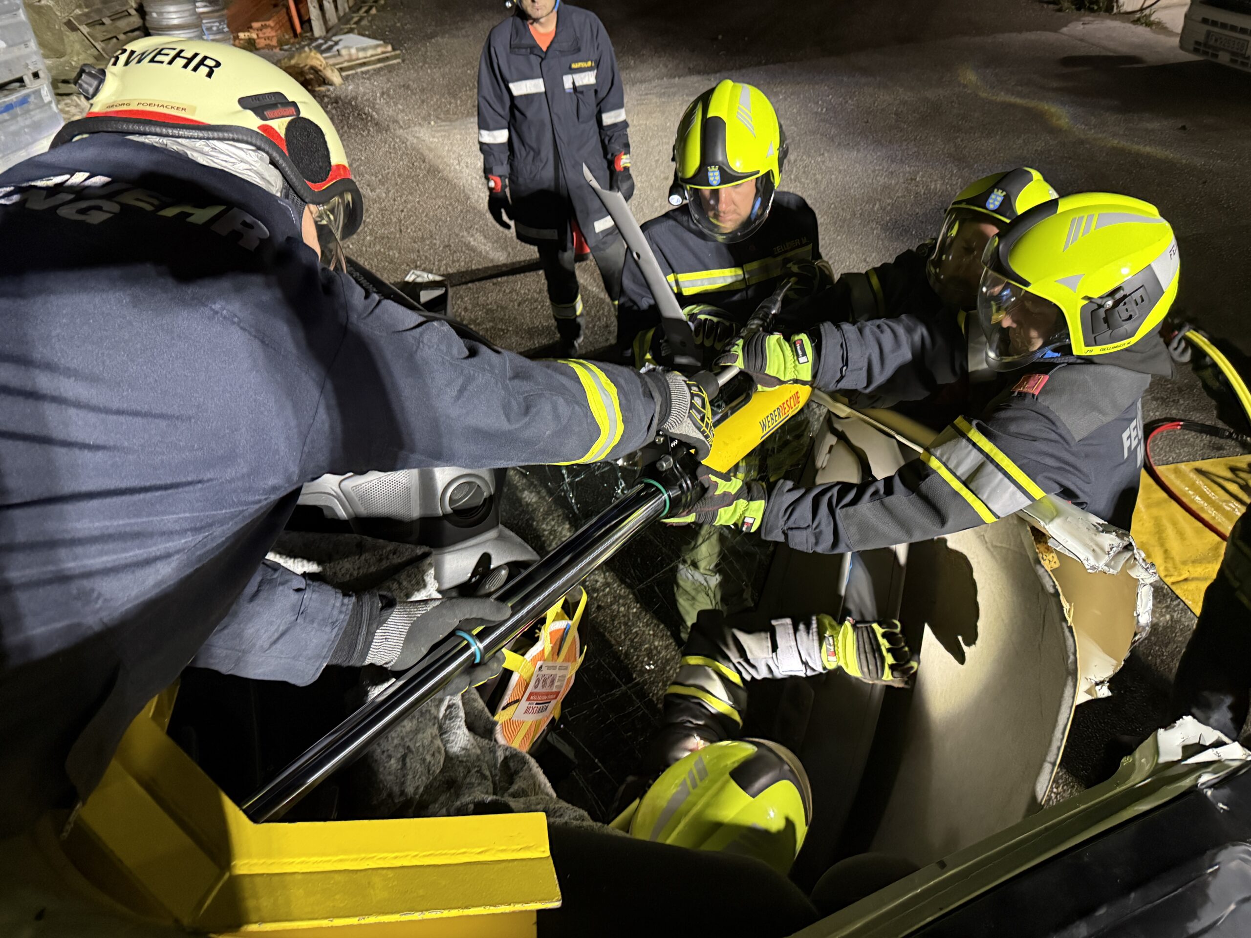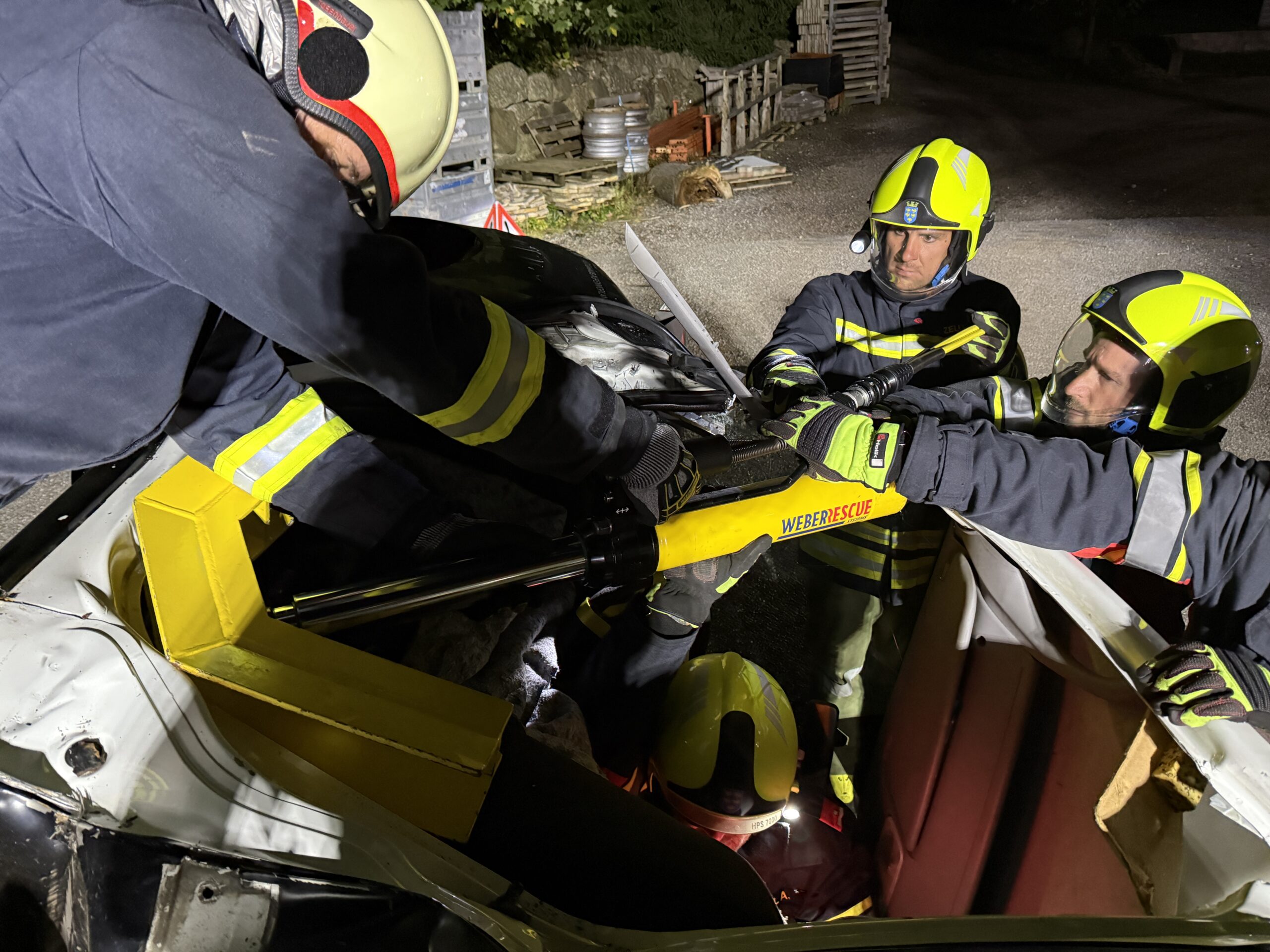 Nach erfolgreicher Rettung der Person hatten alle Kameradinnen und Kameraden die Möglichkeit, den Umgang mit Spreizer und Schere zu üben und verschiedene Techniken für den technischen Einsatz praktisch auszuprobieren.