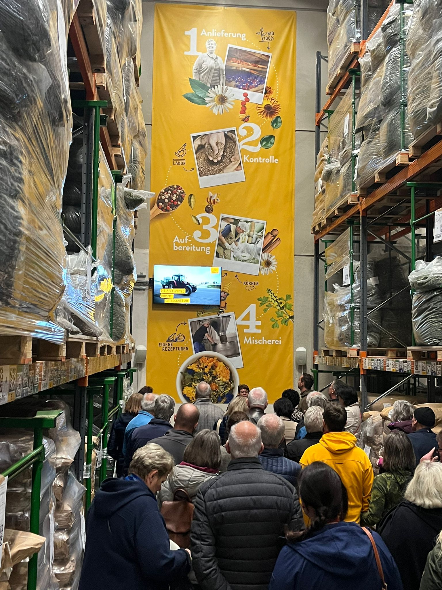 Dort angekommen, erwartete uns um 09:30 Uhr eine Produktverkostung, bei der wir verschiedene Tees, Gewürze und andere Sonnentor-Produkte probieren konnten. Anschließend begann die Betriebsführung durch die Lagerhallen und Produktionsstätten, bei der wir interessante Einblicke in die nachhaltige Herstellung der Produkte erhielten. Zum Abschluss bot sich im Shop noch die Möglichkeit, verschiedene Sonnentor-Produkte zu erwerben.