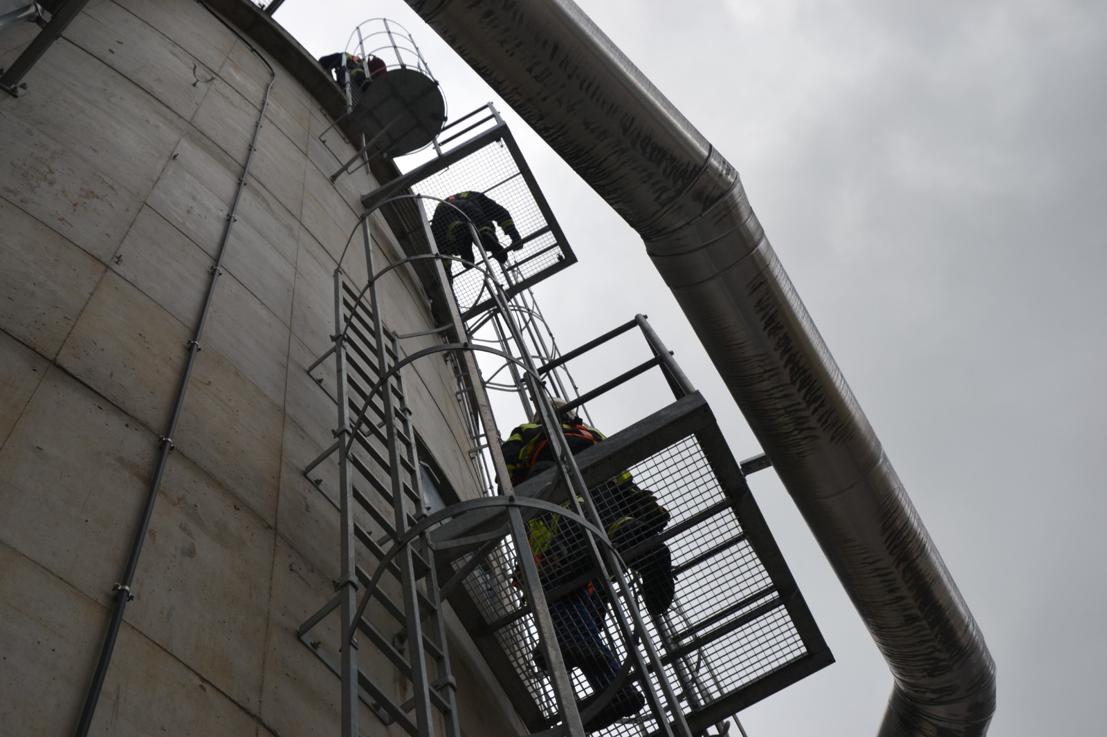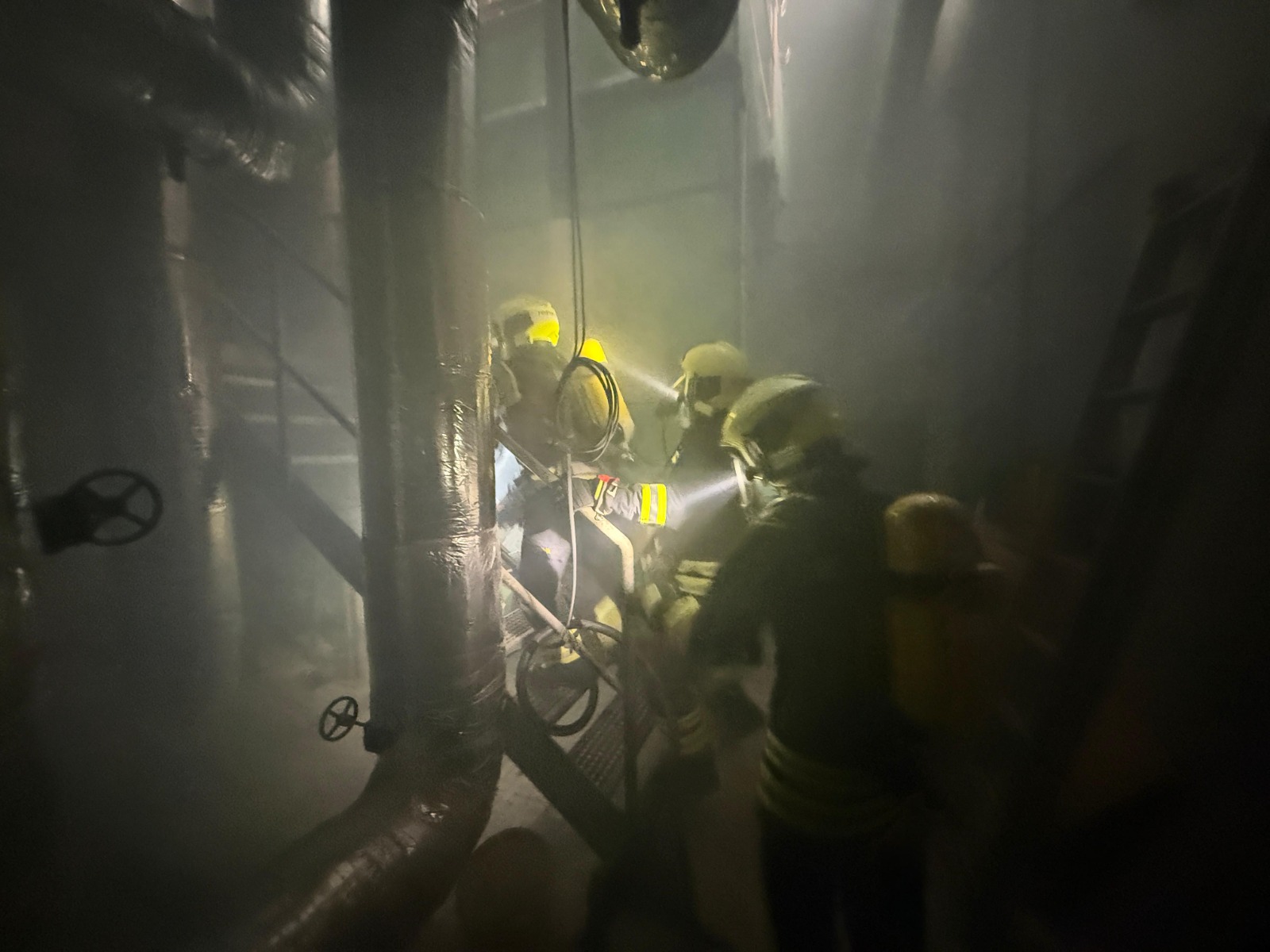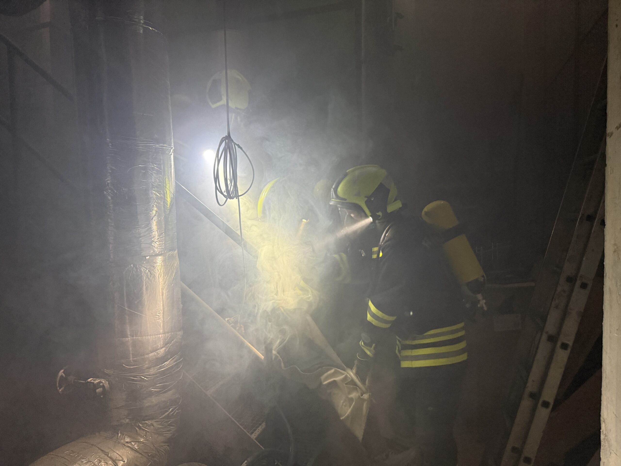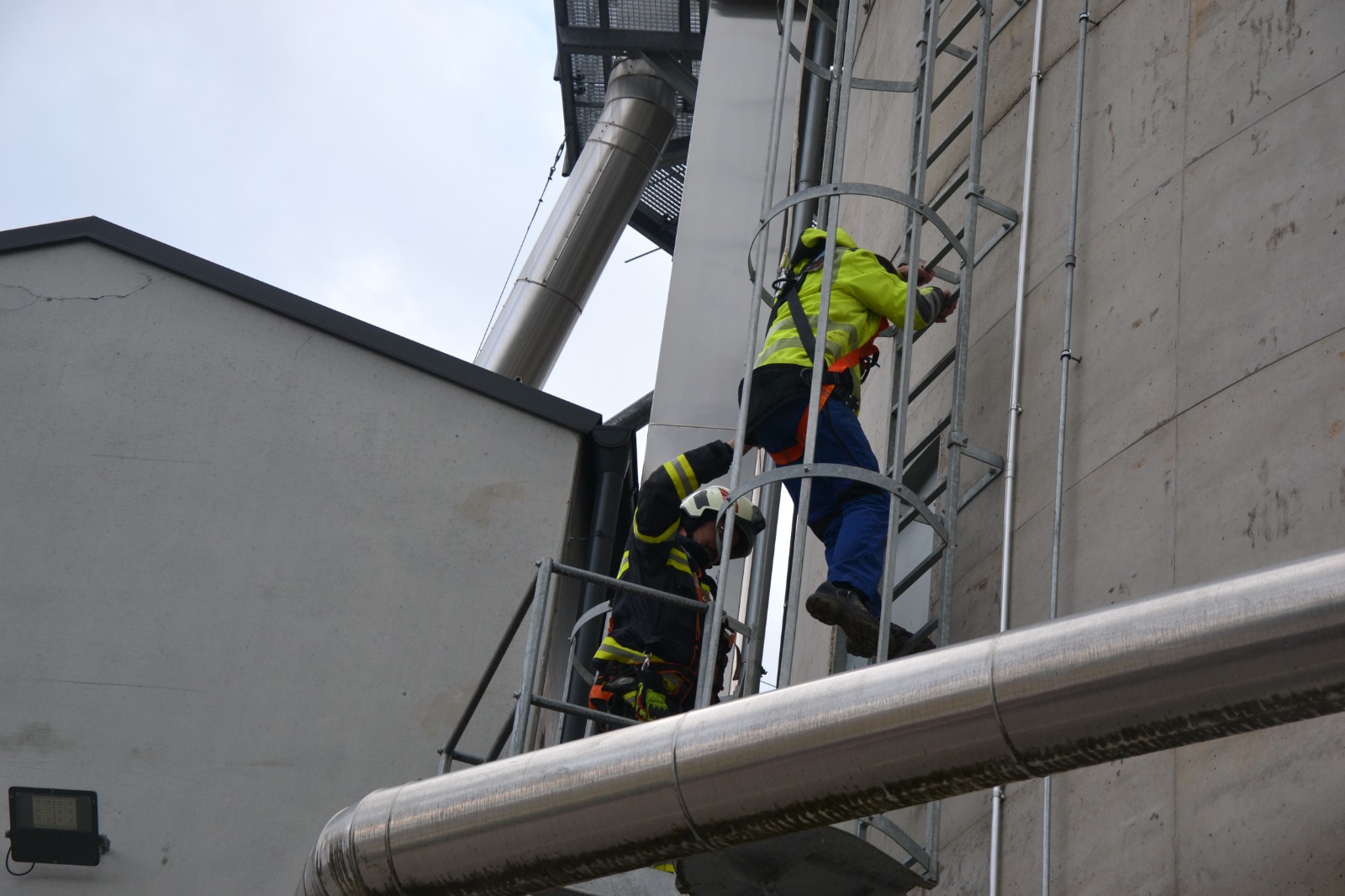 Angenommen wurde, dass es bei Elektroarbeiten in einem Obergeschoss zu einem Brand mit starker Rauchentwicklung kam. Ein Mitarbeiter, welcher sich auf einem Silo befand, bemerkte das Unglück und verständigte die Einsatzkräfte, konnte jedoch nicht mehr selbstständig vom Silo herunter.