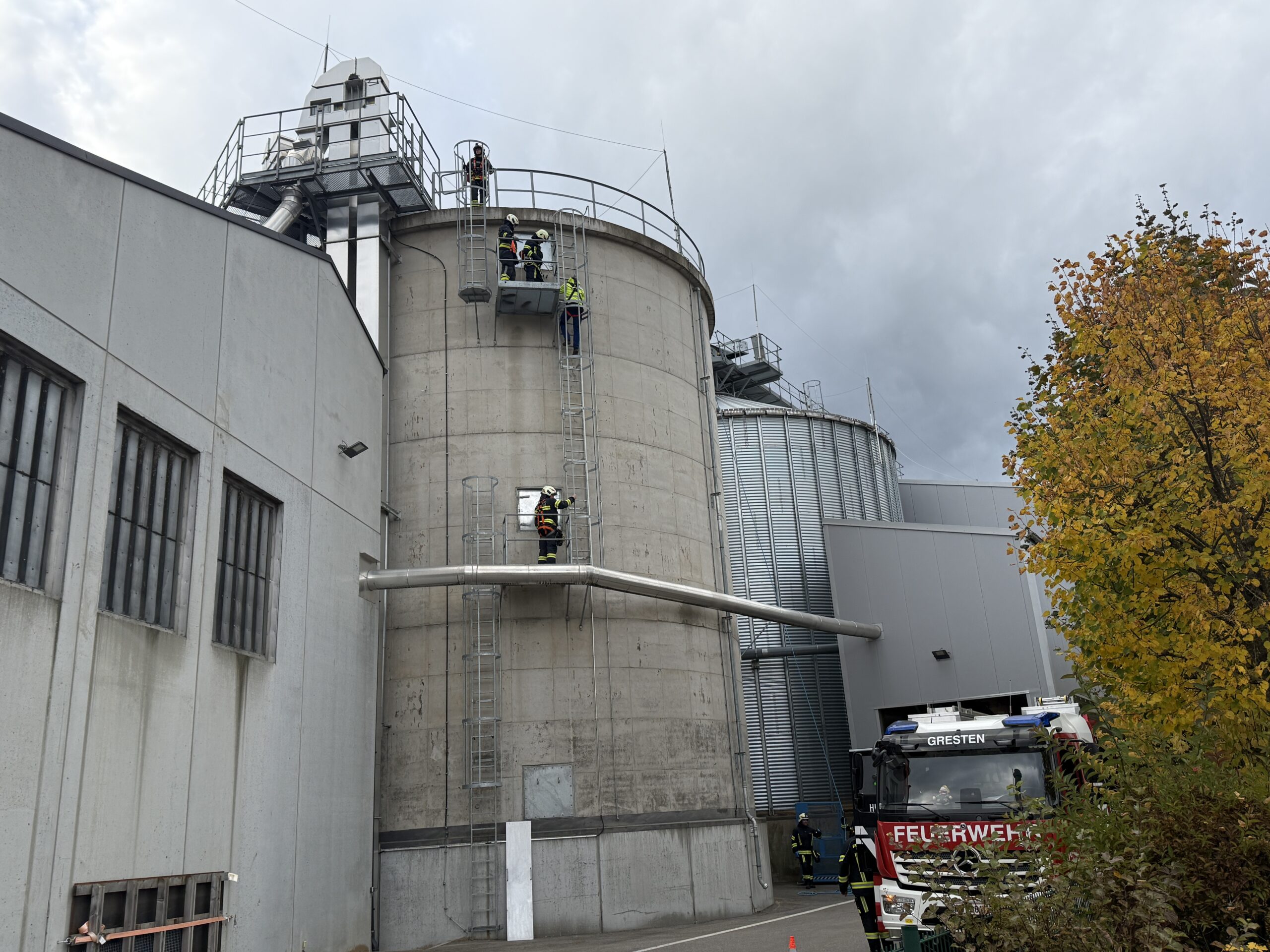 Die erstanrückende Feuerwehr Gresten übernahm die Einsatzleitung und koordinierte den Einsatz sowie die nachkommenden Feuerwehren. Im Gebäude wurden mehrere Personen vermisst, die andere Person auf dem Silo musste ebenfalls gerettet werden – eine herausfordernde Situation für die Einsatzkräfte.
