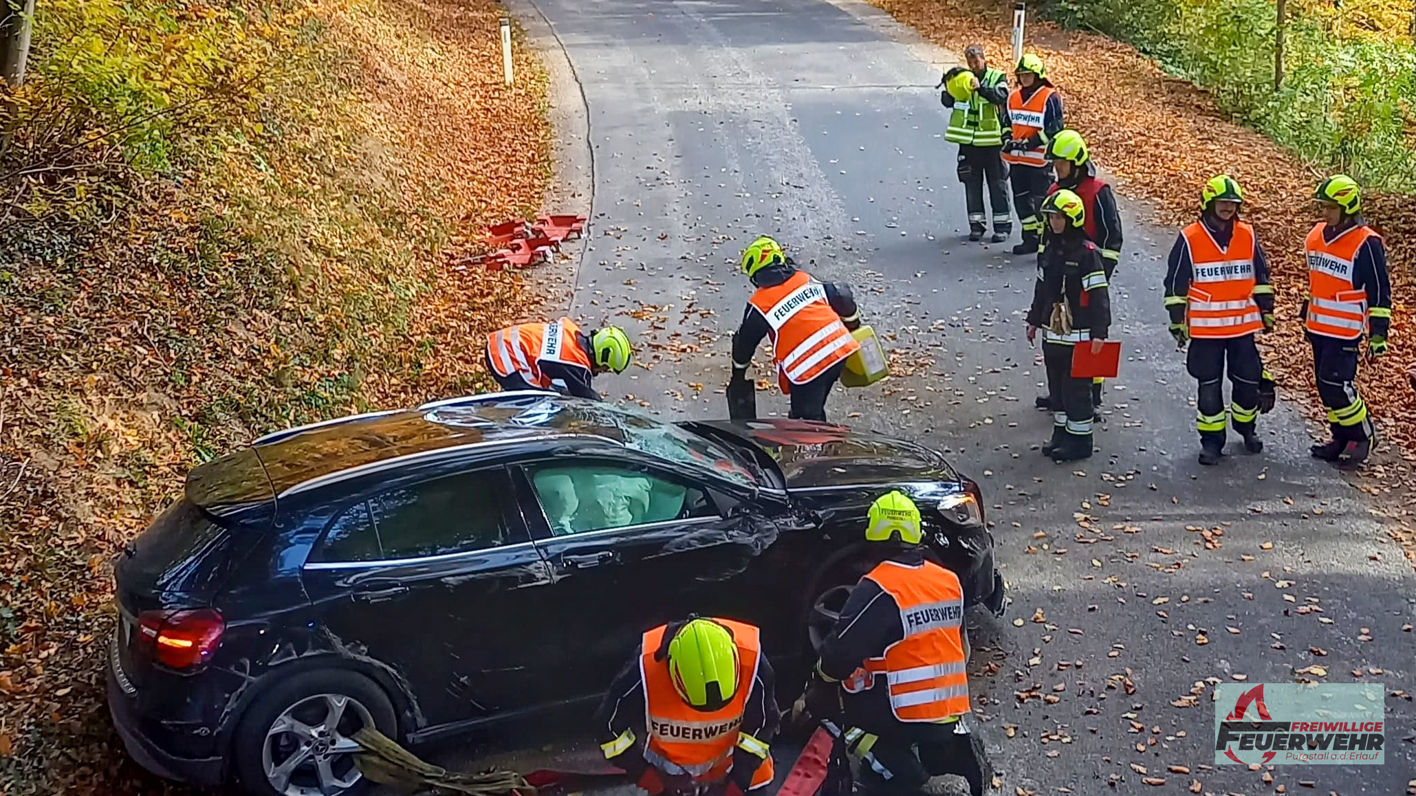 Die Florianis sicherten die Unfallstelle ab, errichteten einen Brandschutz und banden auslaufende Betriebsmittel. Nach der polizeilichen Freigabe wurde das Fahrzeug geborgen und unweit der Unfallstelle sicher abgestellt.