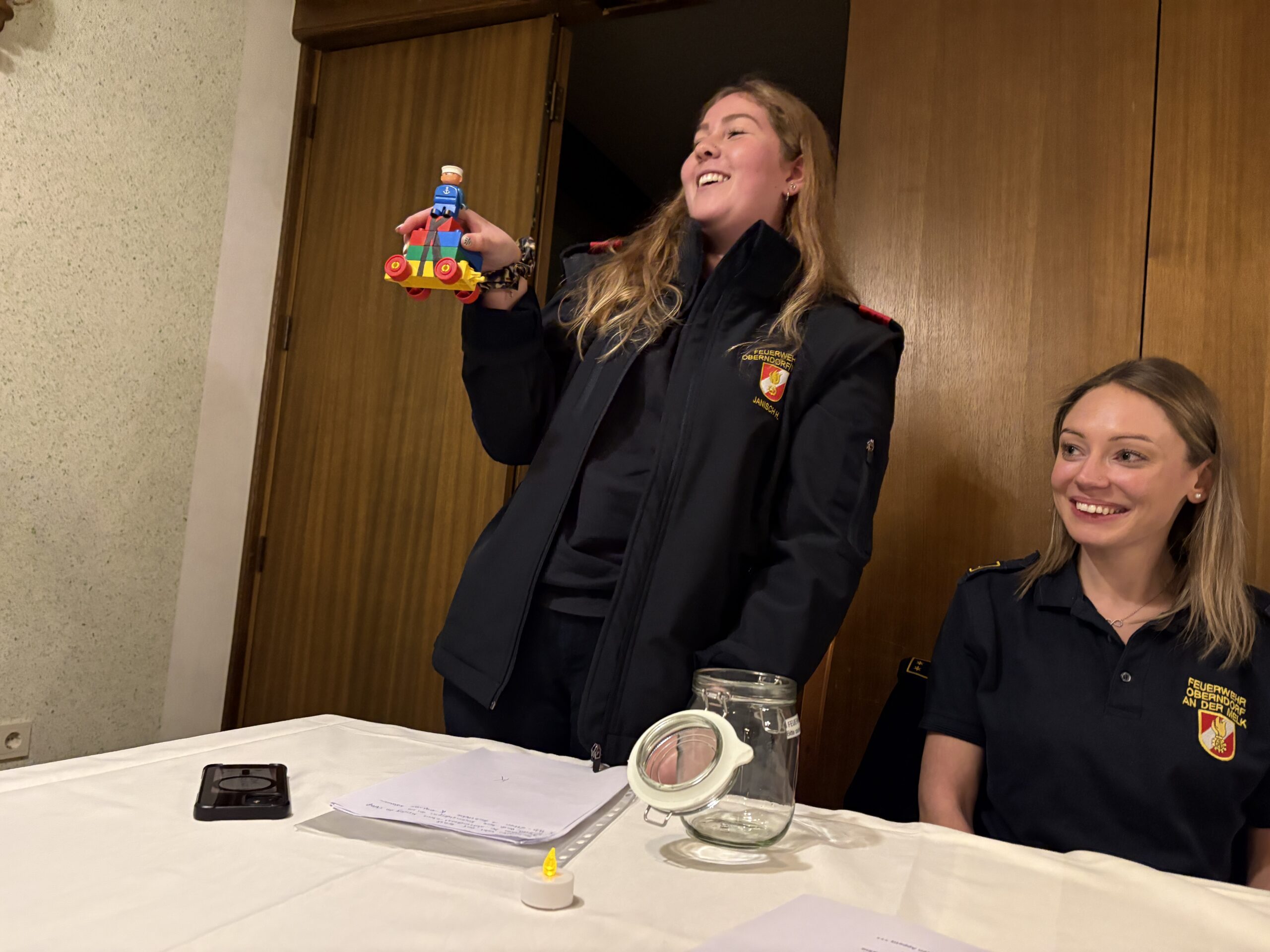 Gestartet wurde im Feuerwehrhaus Oberndorf, wo die Einsatzkräfte mit Ortskarten ausgestattet wurden. Mithilfe von Informationen der Einsatzleitung und den übermittelten Koordinaten mussten die Fahrzeuge verschiedene Positionen im Gemeindegebiet anfahren. An jedem dieser Punkte erwartete die Teilnehmenden ein beleuchtetes Glas mit Klemmbausteinen.