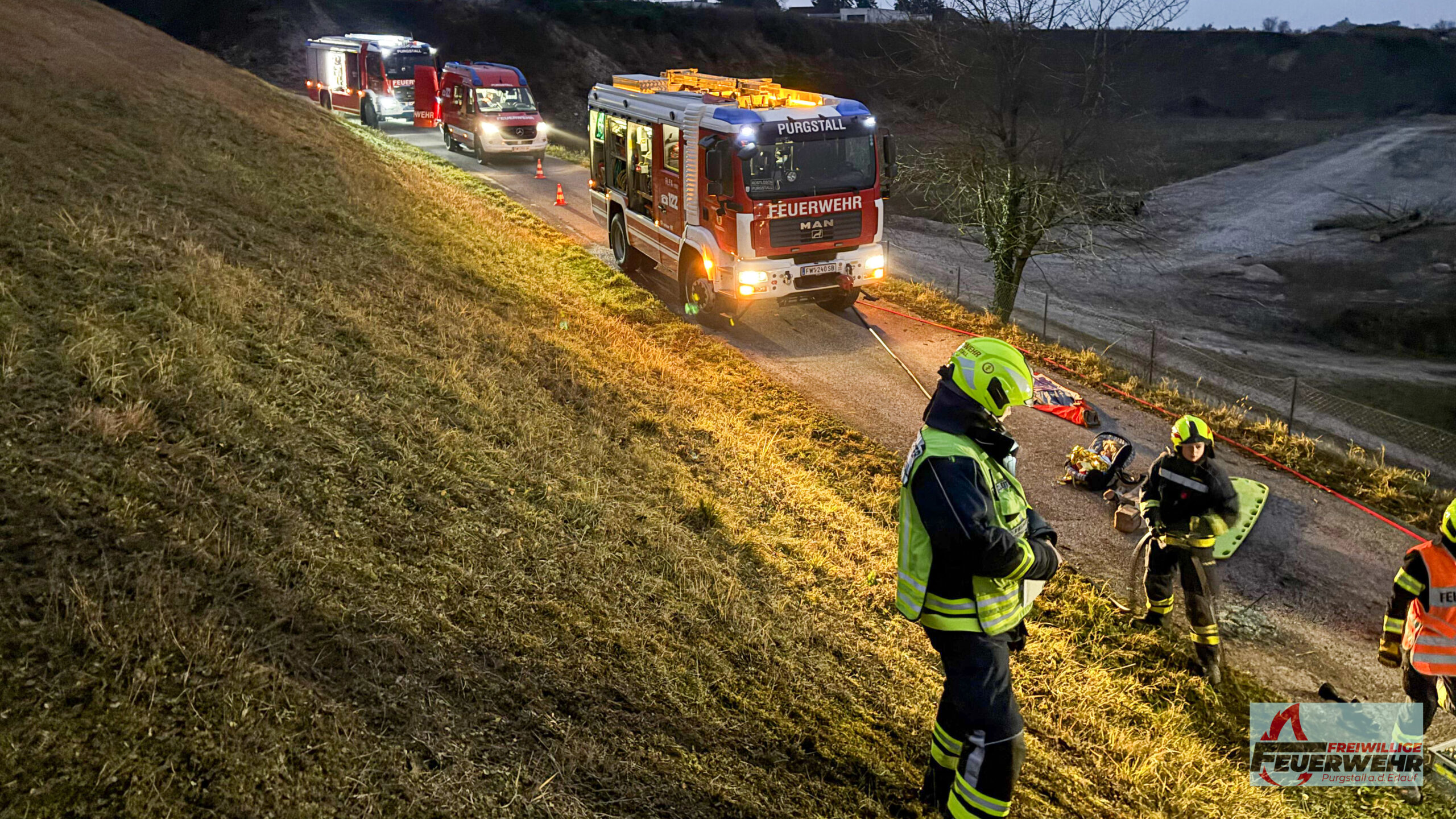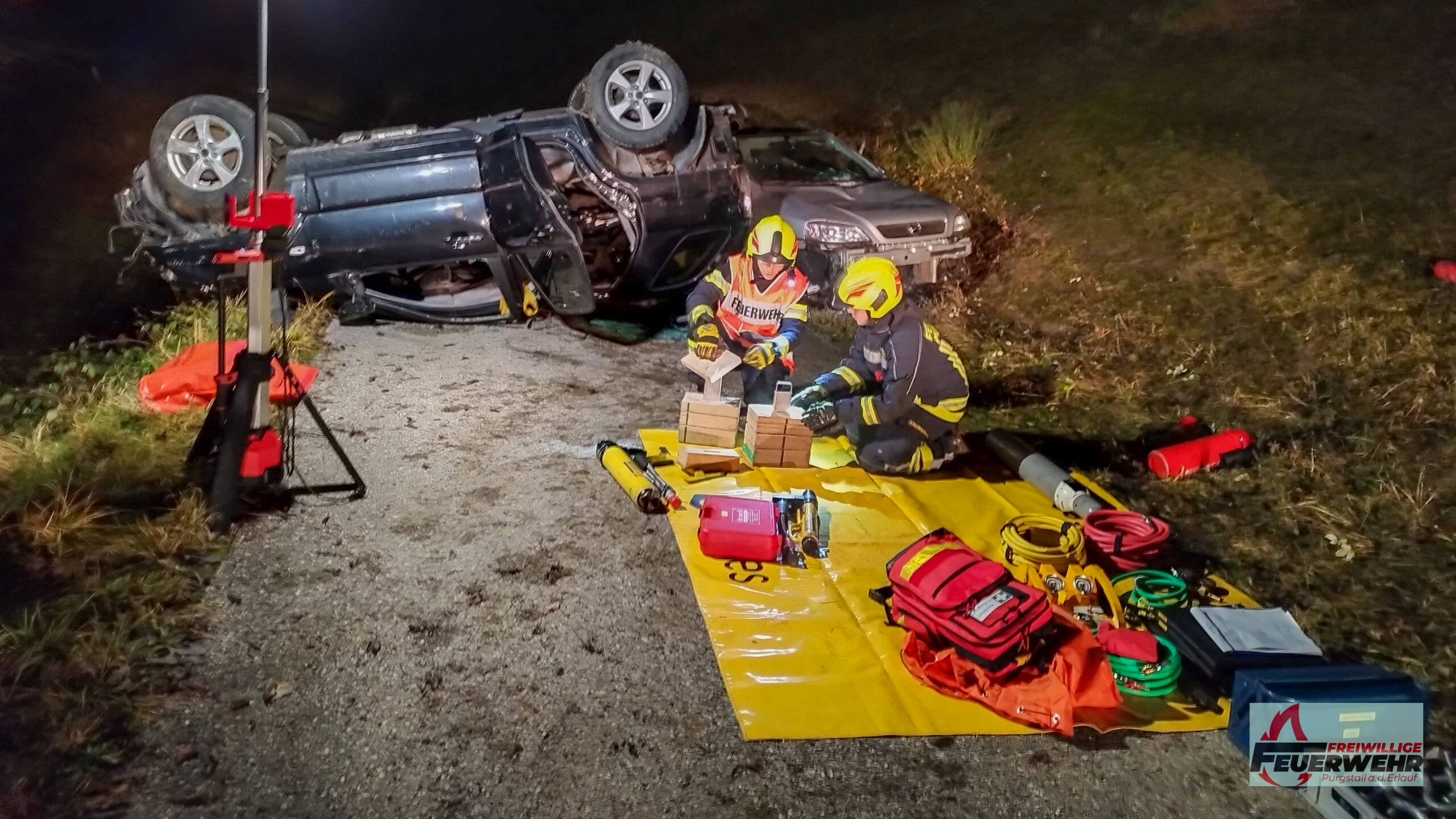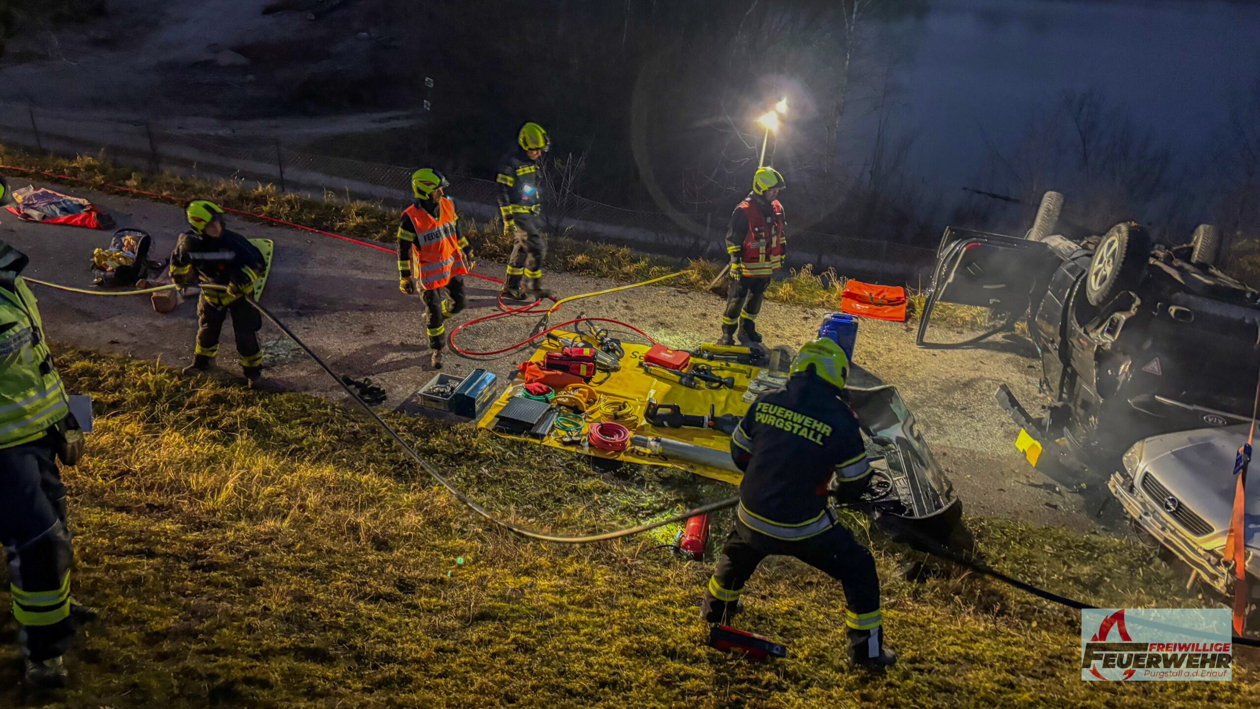 Am Samstag, dem 13. Dezember 2025, führte die Feuerwehr Purgstall eine realitätsnahe Einsatzübung durch. Übungsannahme war ein schwerer Verkehrsunfall auf einer Landstraße, bei dem mehrere Personen in den Fahrzeugen eingeklemmt waren.