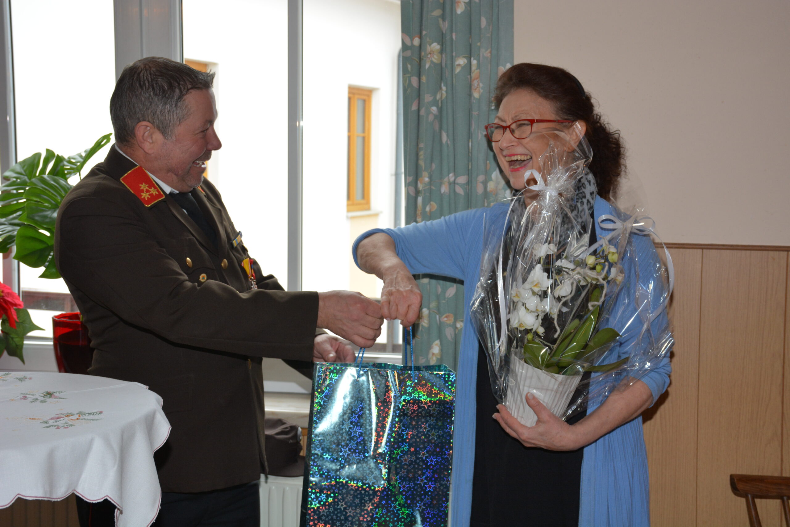 Im Zuge der Versammlung wurden außerdem die Hochwassermedaillen an alle Kameradinnen und Kameraden verliehen, die beim Hochwassereinsatz 2024 im Einsatz standen. Zusätzlich wurden Verwalterin Julia Pils anlässlich ihres 30. Geburtstags, Herbert Karl zu seinem 80. Geburtstag sowie Gabi Penzenauer für die stets verlässliche Bewirtung jeweils mit einem Blumenstrauß geehrt.