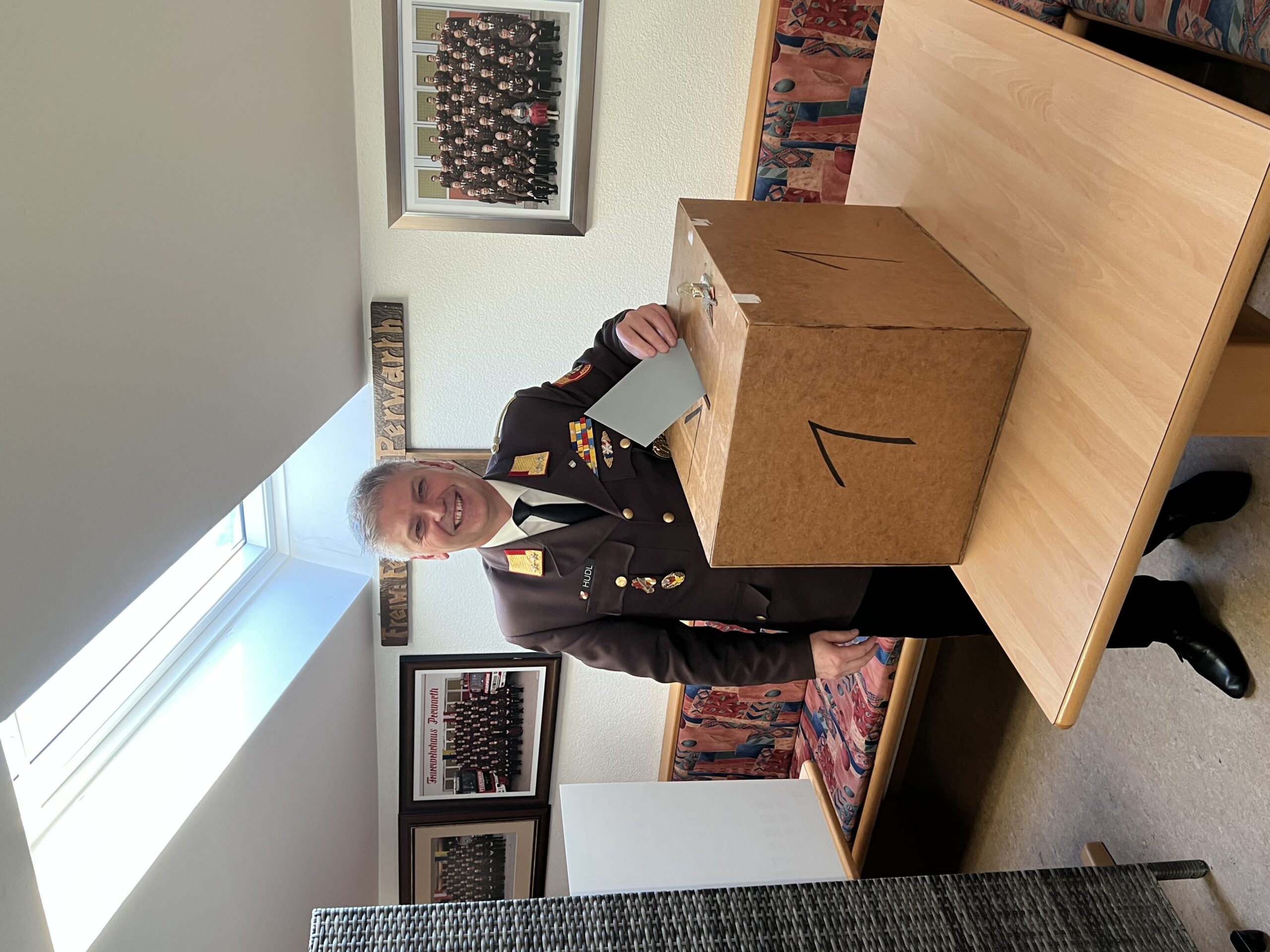 Im Rahmen der Versammlung standen die Neuwahlen des Feuerwehrkommandanten und -stellvertreter auf der Tagesordnung. Dabei wurde die bewährte Führung in ihren Funktionen bestätigt:
