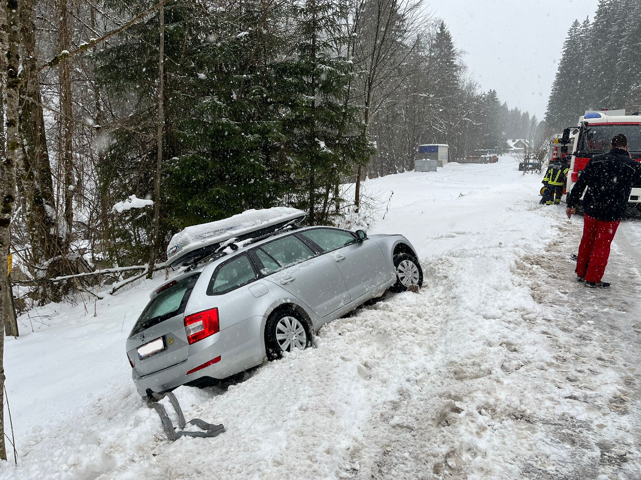 Aufgrund der winterlichen Fahrbahnverhältnisse geriet ein PKW beim Durchfahren einer Kurve ins Rutschen und kam anschließend im Straßengraben zum Stillstand. Das Fahrzeug wurde dabei von einem Schranken, der einen Güterweg absperrt, gebremst. Infolge des Aufpralls bohrte sich eine Eisenstange des Schrankenmechanismus in das Fahrzeug.