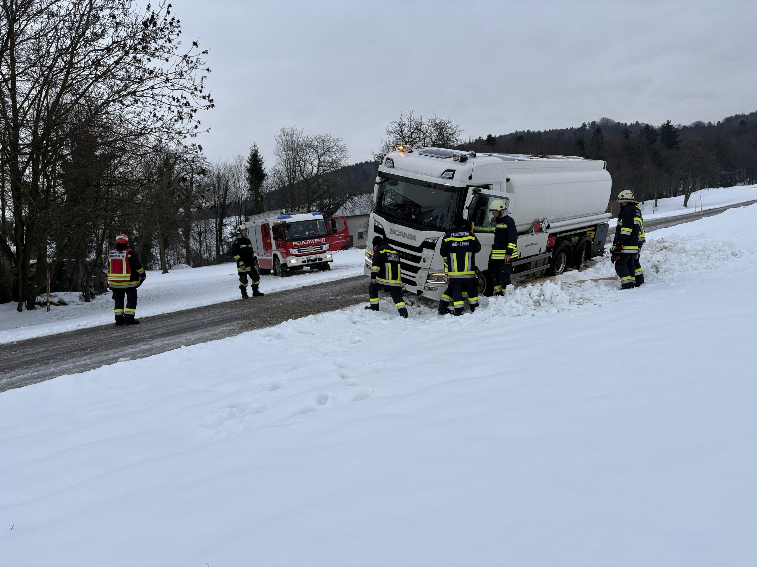 Nach erfolgreichen Bergung wurde die Straße wieder freigegeben, und die wartenden Haushalte konnten weiterhin mit Heizöl versorgt werden.