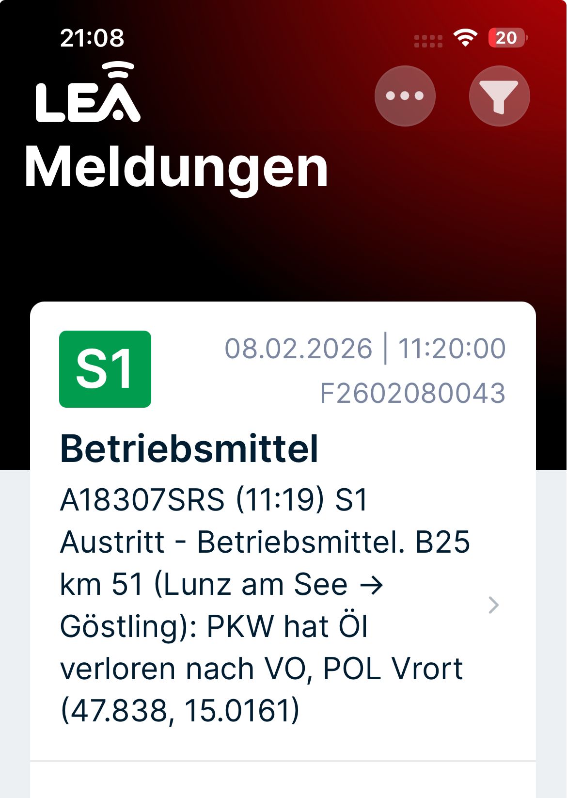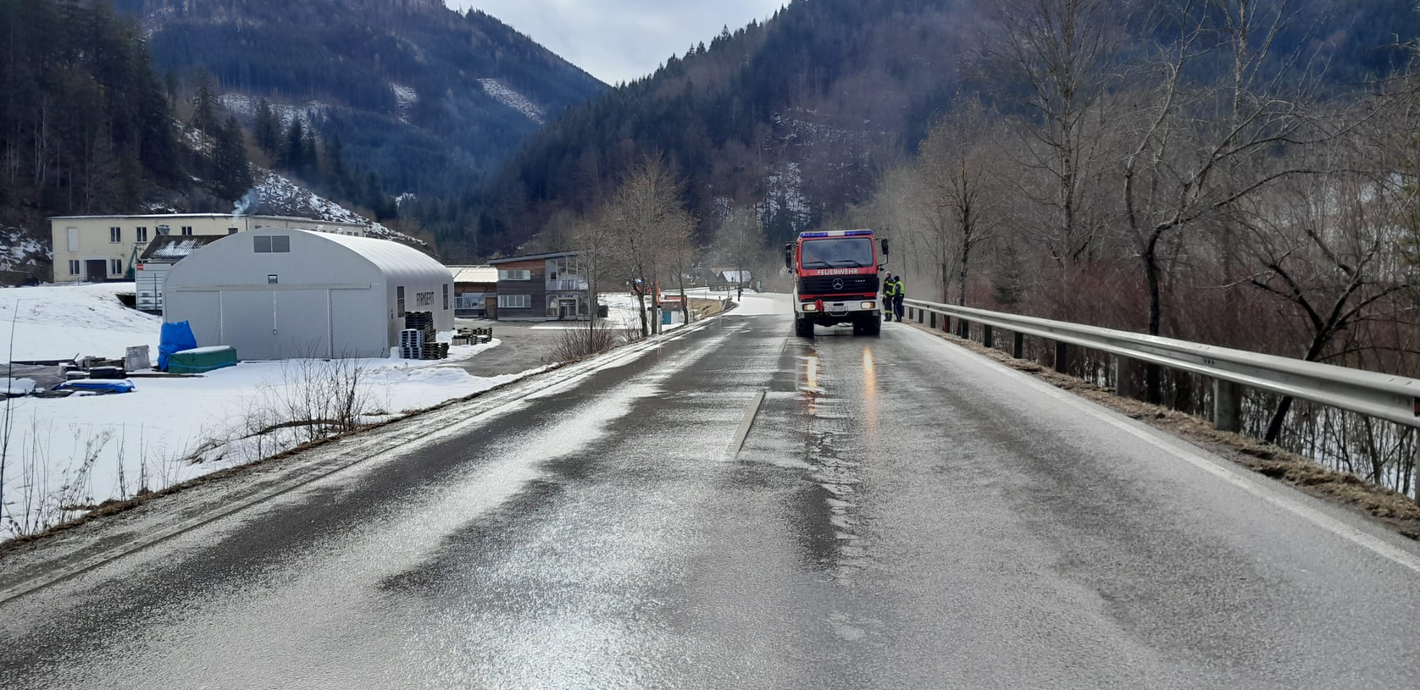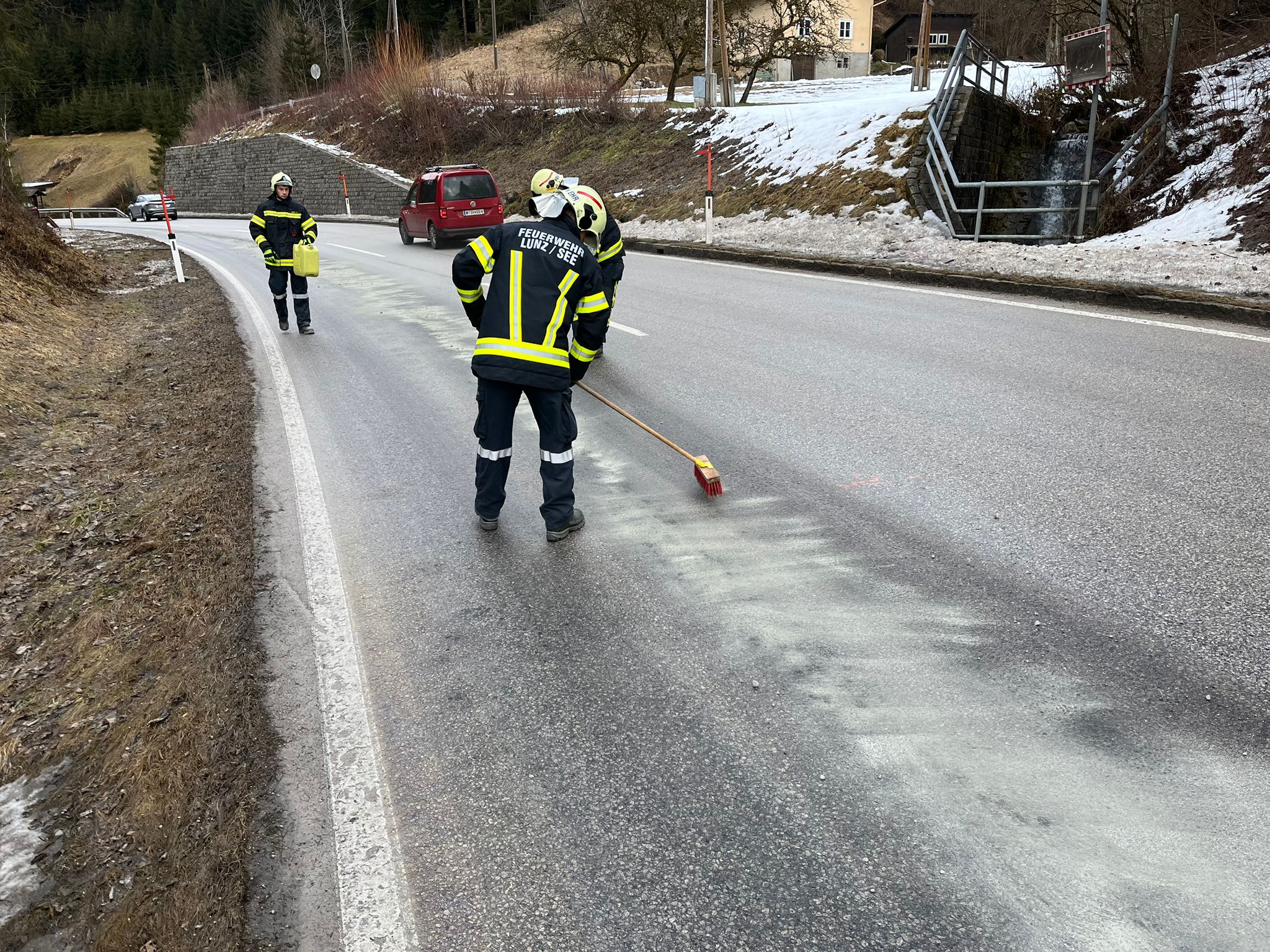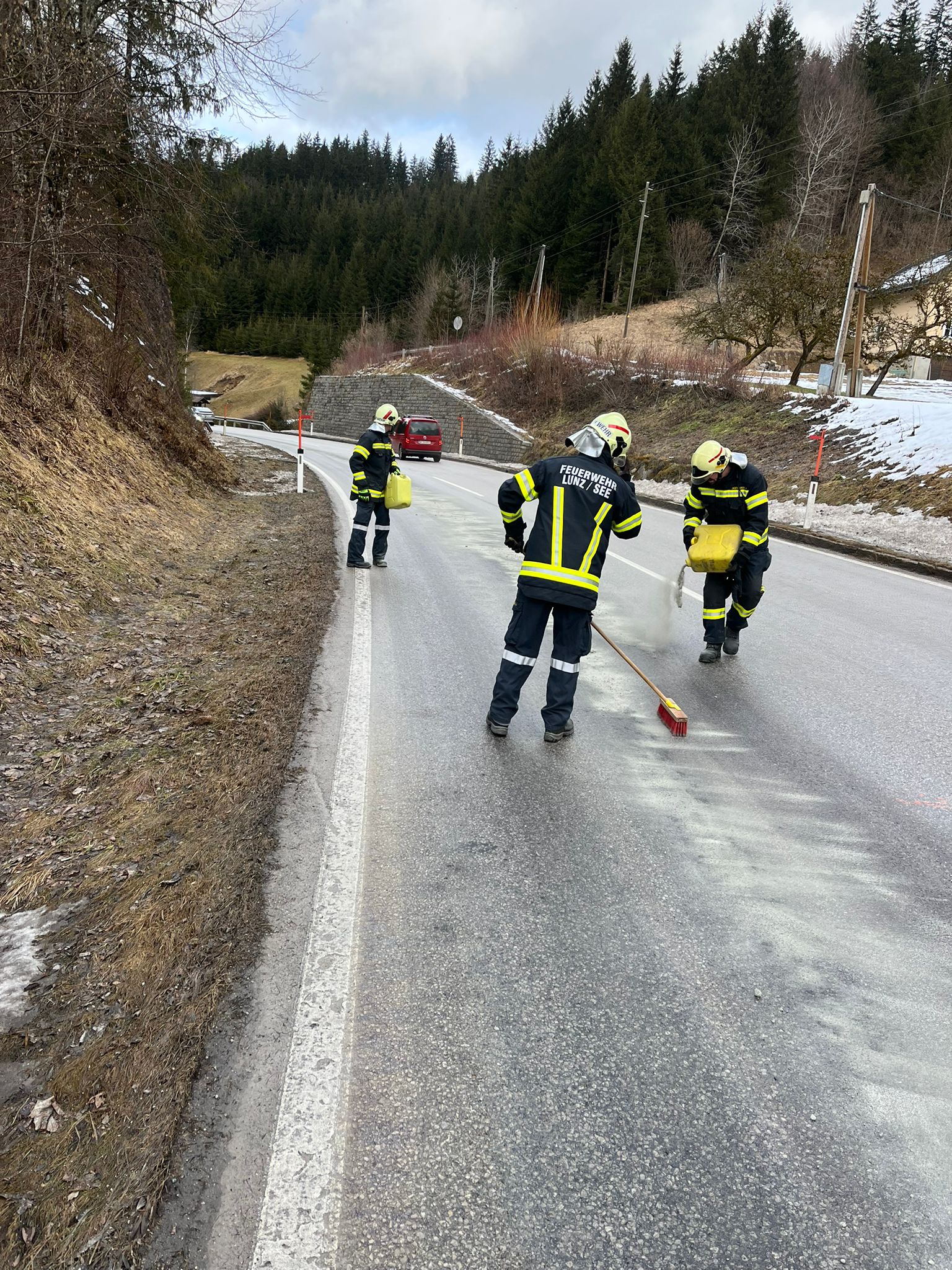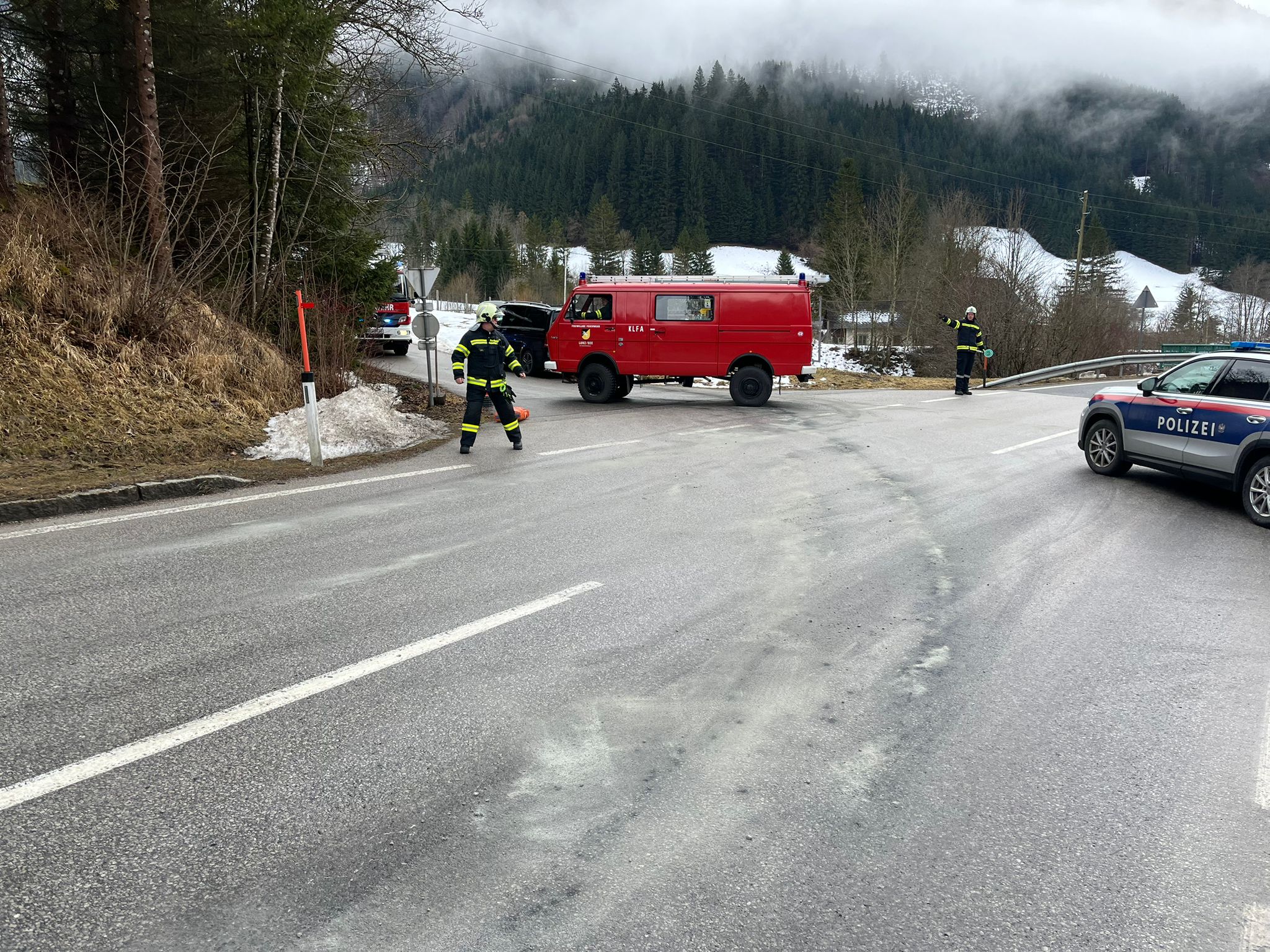 Am 08.02.2026 wurde die Freiwillige Feuerwehr Lunz am See um 11:20 Uhr mittels Pager- und Handyalarmierung zu einem S1 – Austritt von Betriebsmitteln auf die B25 alarmiert.
