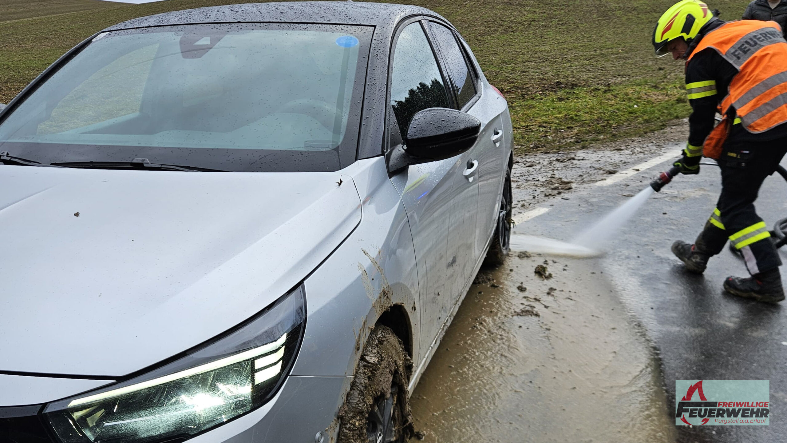 Die Einsatzkräfte sicherten die Unfallstelle ab und zogen das Fahrzeug mit der Seilwinde zurück auf die Fahrbahn. Nach der Reinigung der Reifen konnte der Lenker seine Fahrt selbstständig fortsetzen. Während der Arbeiten kam es kurzfristig zu Verkehrsbehinderungen. Im Anschluss wurde noch die Straße gereinigt.
