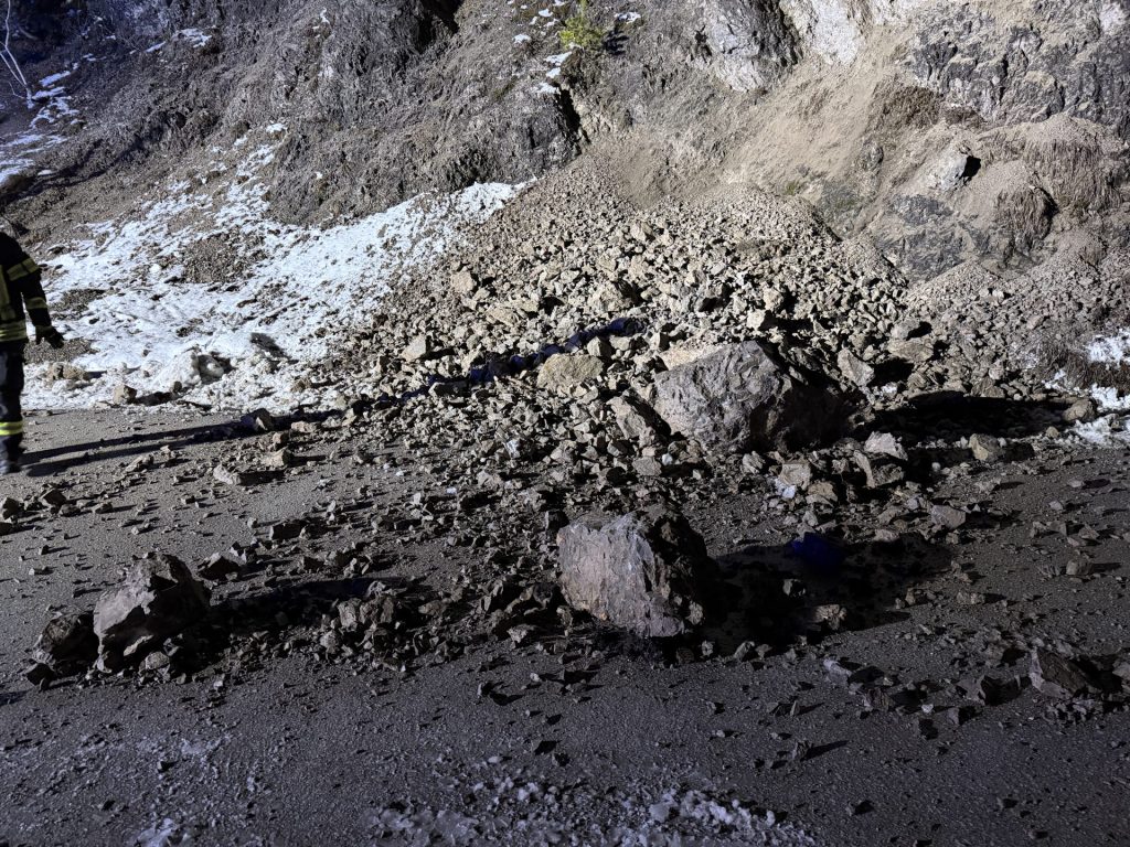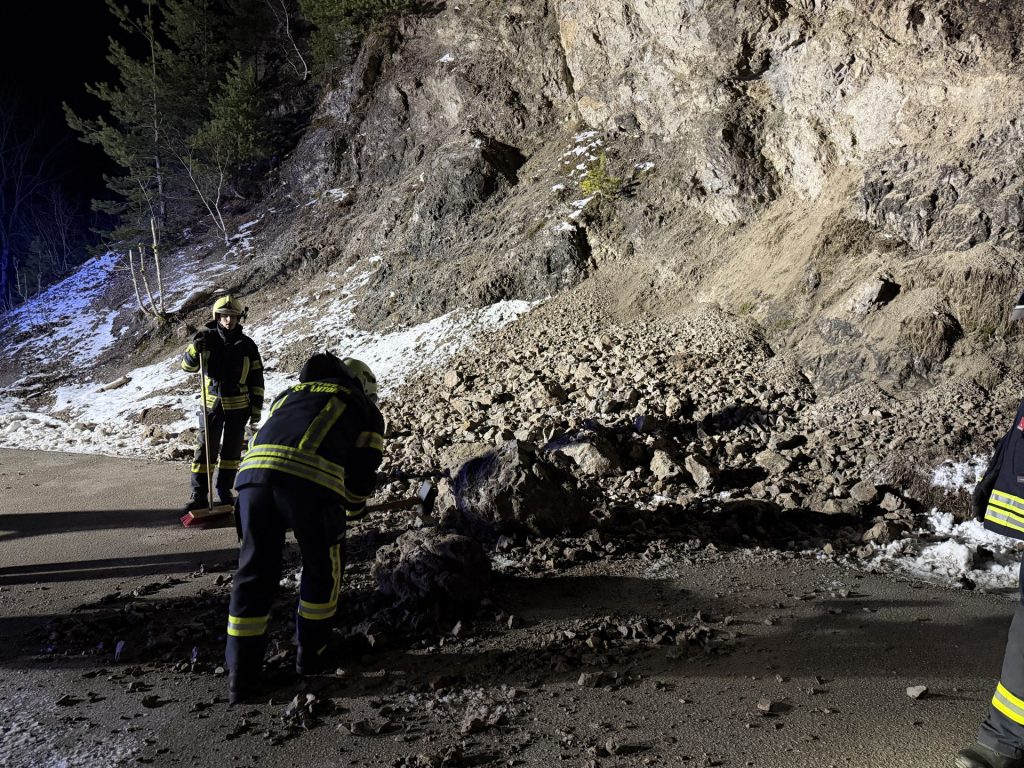 Am späten Nachmittag des 16. Februar wurden wir von der Polizei zu einem Steinschlag auf der Hochbärneckstraße alarmiert. Mehrere Gesteinsbrocken waren auf die Fahrbahn gestürzt und blockierten teilweise die Straße. Unsere Einsatzkräfte entfernten die Steine und reinigten die Fahrbahn. Anschließend wurde der betroffene Hang augenscheinlich kontrolliert, um mögliche weitere Gefahren einzuschätzen. Weitere Schritte und Maßnahmen werden von der Gemeinde veranlasst.