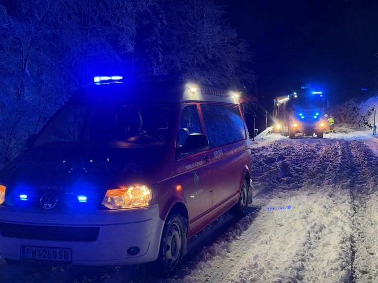 In den frühen Morgenstunden des 18. Februar blieb ein LKW-Lenker auf der schneebedeckten B28 hängen und konnte seine Fahrt nicht fortsetzen. Wir unterstützten den Fahrer beim Anlegen der mitgeführten Schneeketten und begleiteten das Fahrzeug ein Stück weit die Strecke hinauf. Nach rund 1,5 Stunden konnte der Einsatz erfolgreich beendet werden.