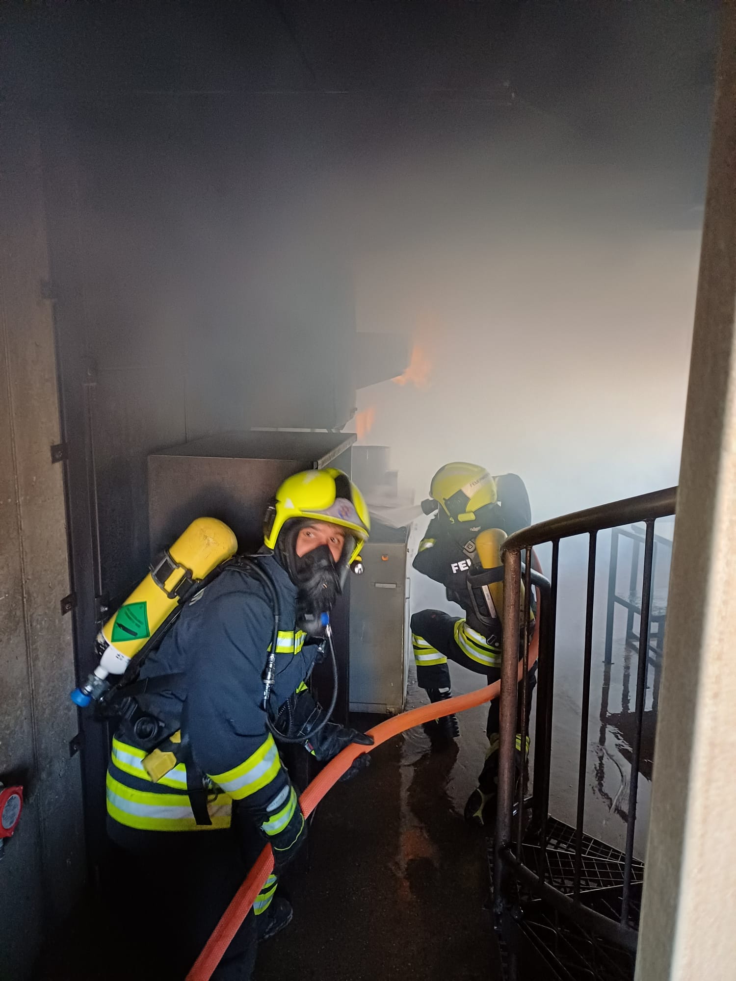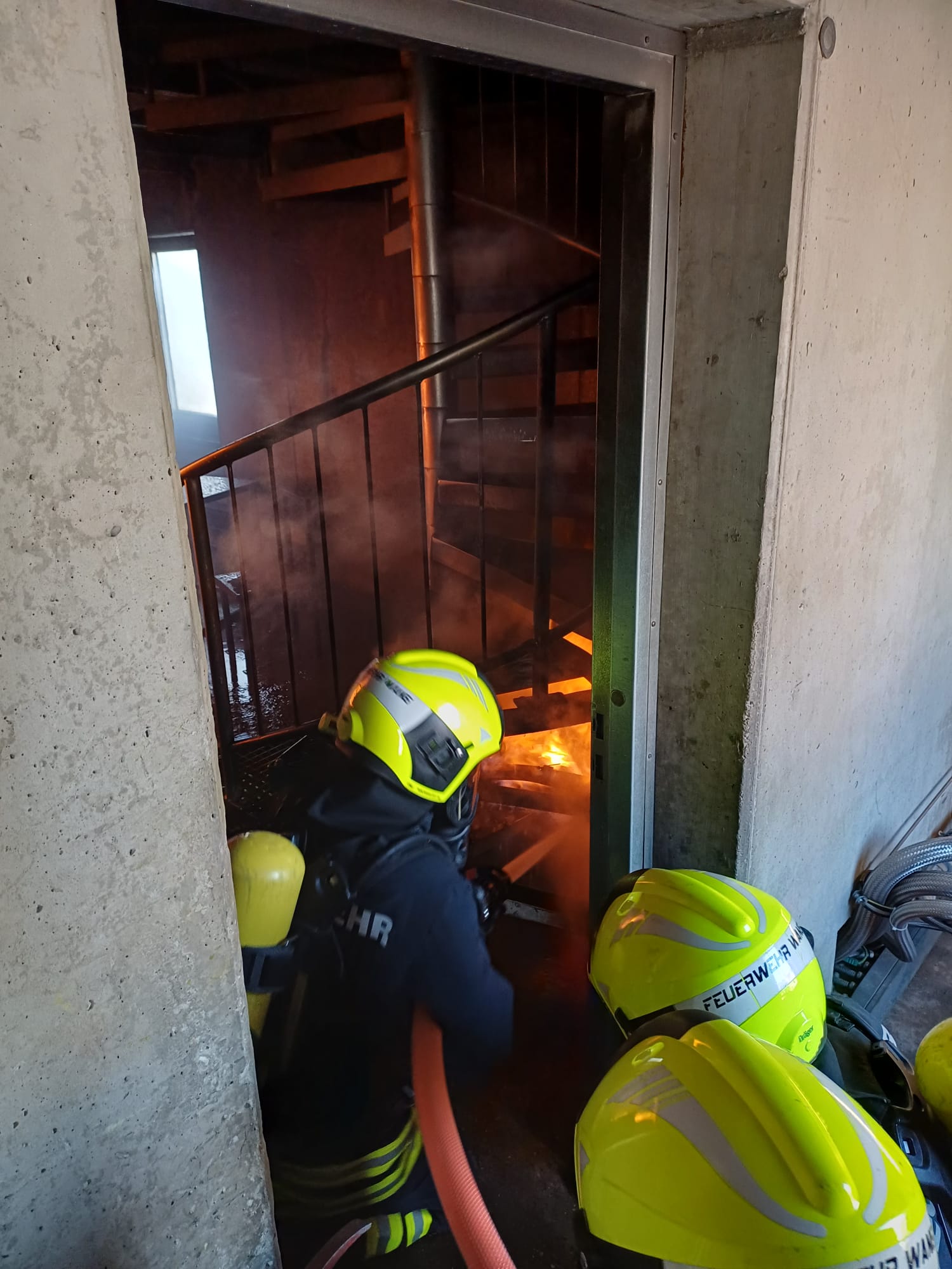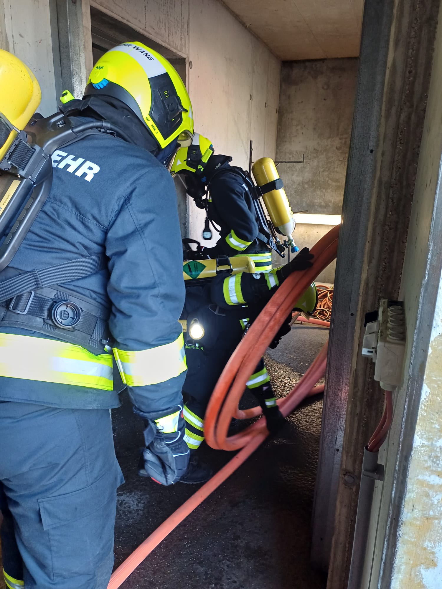 Das Brandhaus bietet verschiedene Räumlichkeiten, in denen unter realitätsnahen Bedingungen – wie großer Hitze und schlechter Sicht durch Rauch – wichtige Techniken erlernt und gefestigt werden können. Dabei konnten wir viele neue Eindrücke gewinnen, um diese im Ernstfall anwenden zu können.