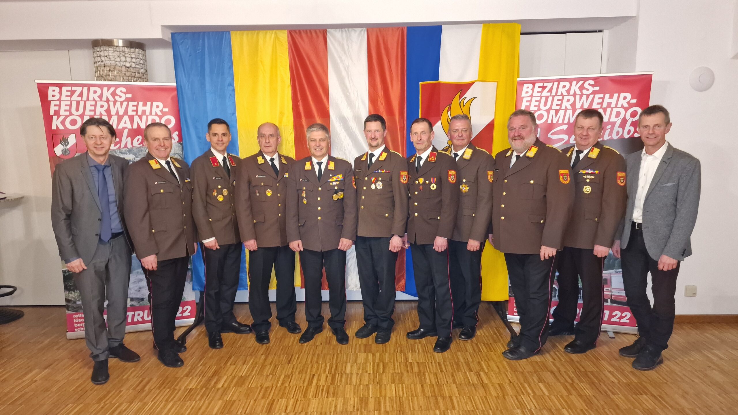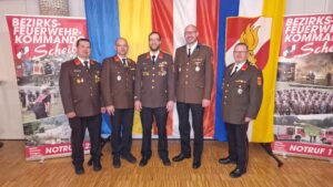 Ein weiterer Höhepunkt der Veranstaltung war die Verleihung von Ehrendienstgraden an verdiente Feuerwehrfunktionäre. Dabei wurde den Geehrten für ihre langjährige Tätigkeit und ihren Einsatz für das Feuerwehrwesen im Bezirk Scheibbs gedankt.