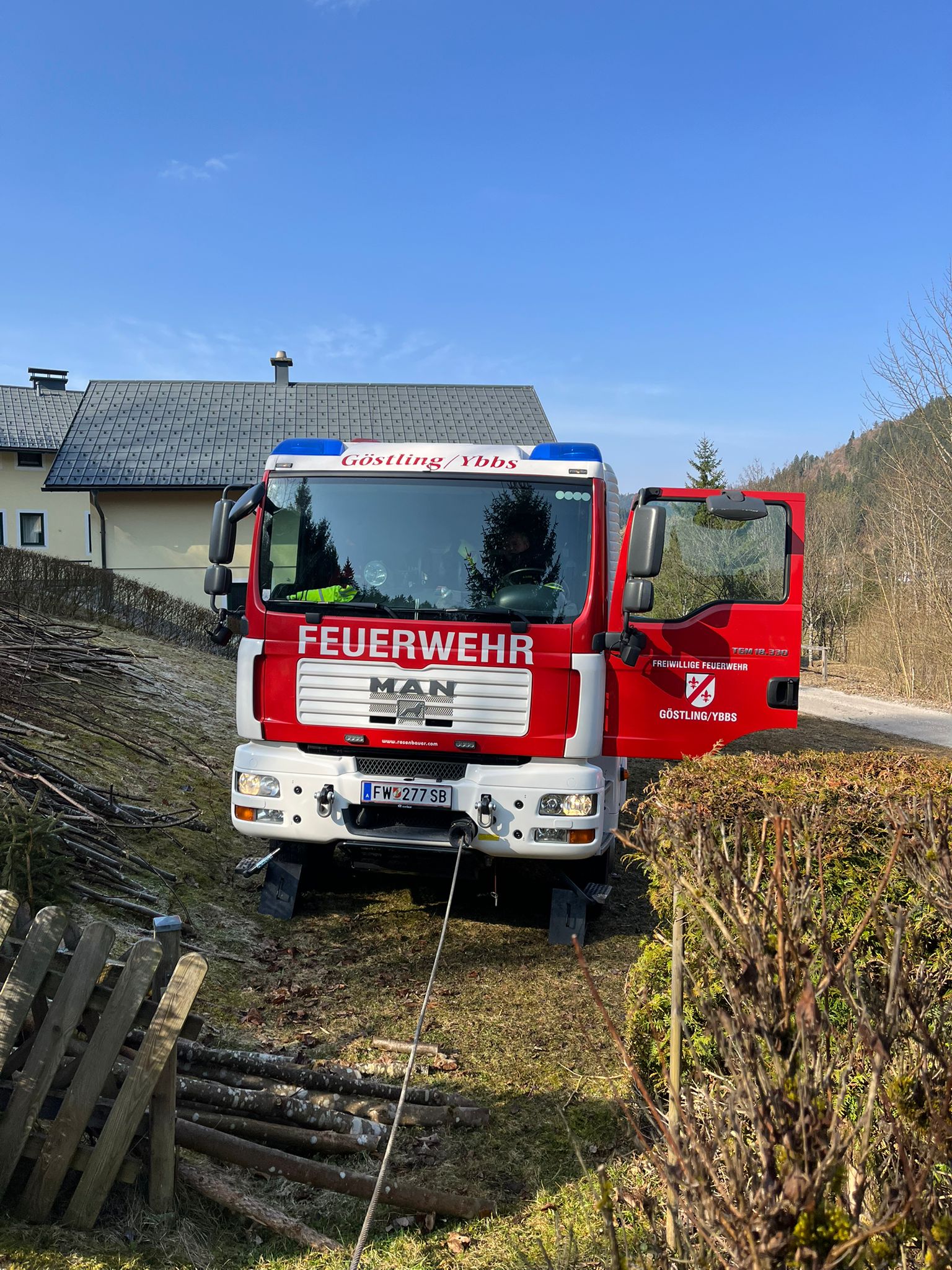 Da die FF Lunz am See nur über eine Freilandverankerung verfügt, wurde die FF Göstling an der Ybbs mit dem RLF nachalarmiert, um eine zusätzliche Freilandverankerung samt Greifzug einsetzen zu können.