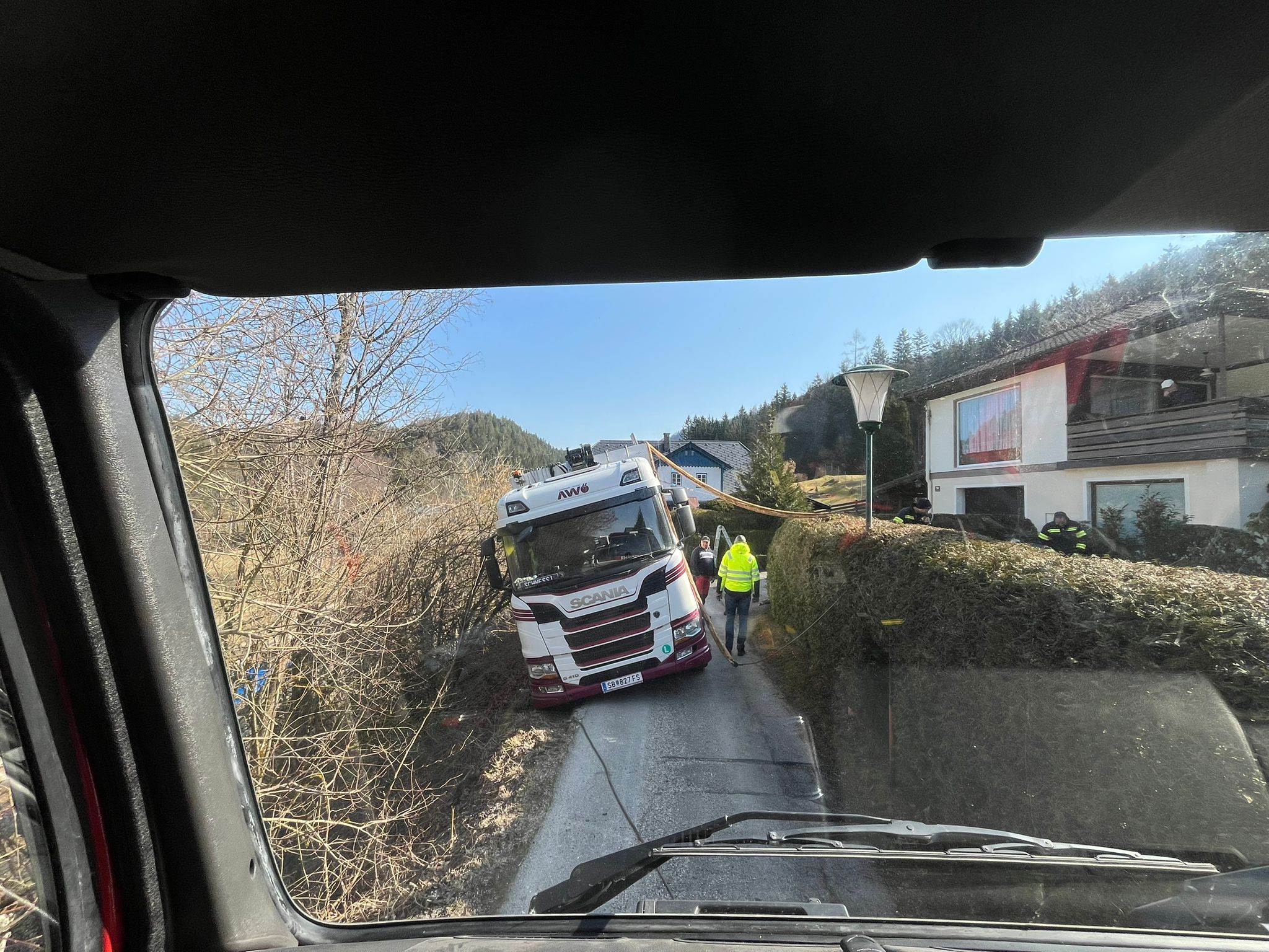 Innerhalb kürzester Zeit konnte der LKW schließlich wieder auf die Straße gebracht werden und seine Arbeit fortsetzen.
