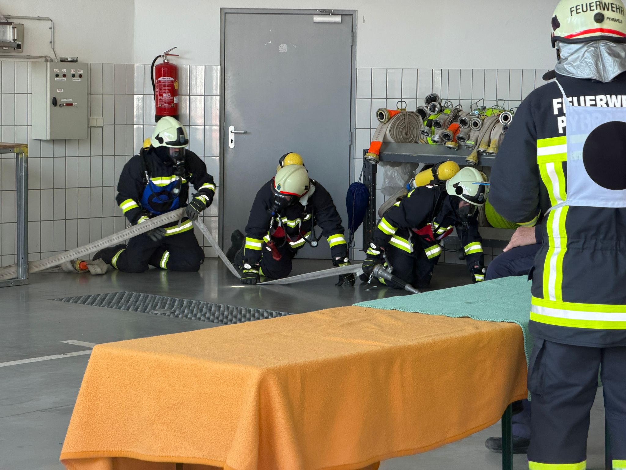 Im praktischen Teil wird besonderes Augenmerk auf die korrekte Gerätebedienung, das sichere Arbeiten unter Atemschutz sowie die Zusammenarbeit innerhalb des Atemschutztrupps gelegt. Dabei steht nicht der Zeitfaktor im Vordergrund – vielmehr dienen die vorgegebenen Sollzeiten dazu, eine rasche Einsatzbereitschaft zu fördern. Sämtliche Abläufe der Ausbildungsprüfung bilden einen komplexen Atemschutzeinsatz ab und orientieren sich an objektiv bewertbaren Kriterien.