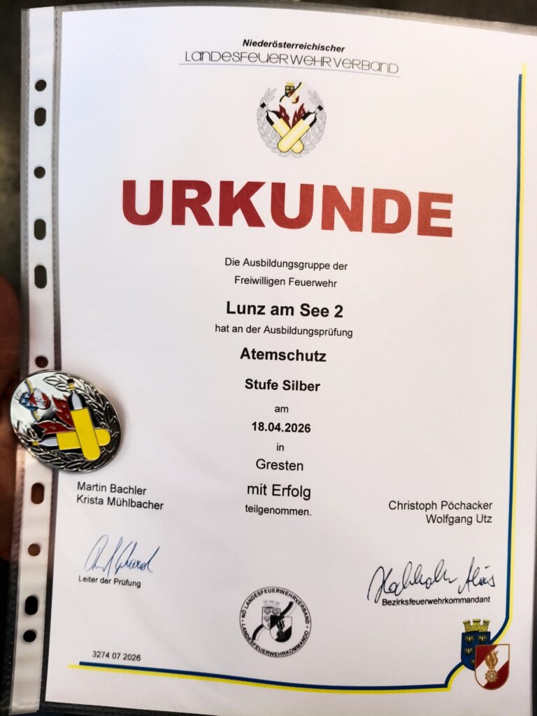 Bereits um 07:00 starteten unsere Atemschutz-Geräteträger, um bei der Ausbildungsprüfung in Gresten teilzunehmen. Von den insgesamt 18 Trupps, die antraten, war auch die Freiwillige Feuerwehr Lunz mit 2 Trupps vertreten. Dank der intensiven Vorbereitung konnten alle Teilnehmer die Prüfer überzeugen und nach Ausrüsten, Personensuche, Hindernisbahn, Einsatzbereitschaft herstellen und einigen Wissensfragen hieß es für alle Teilnehmer „GRATULATION zur bestandenen Prüfung“
