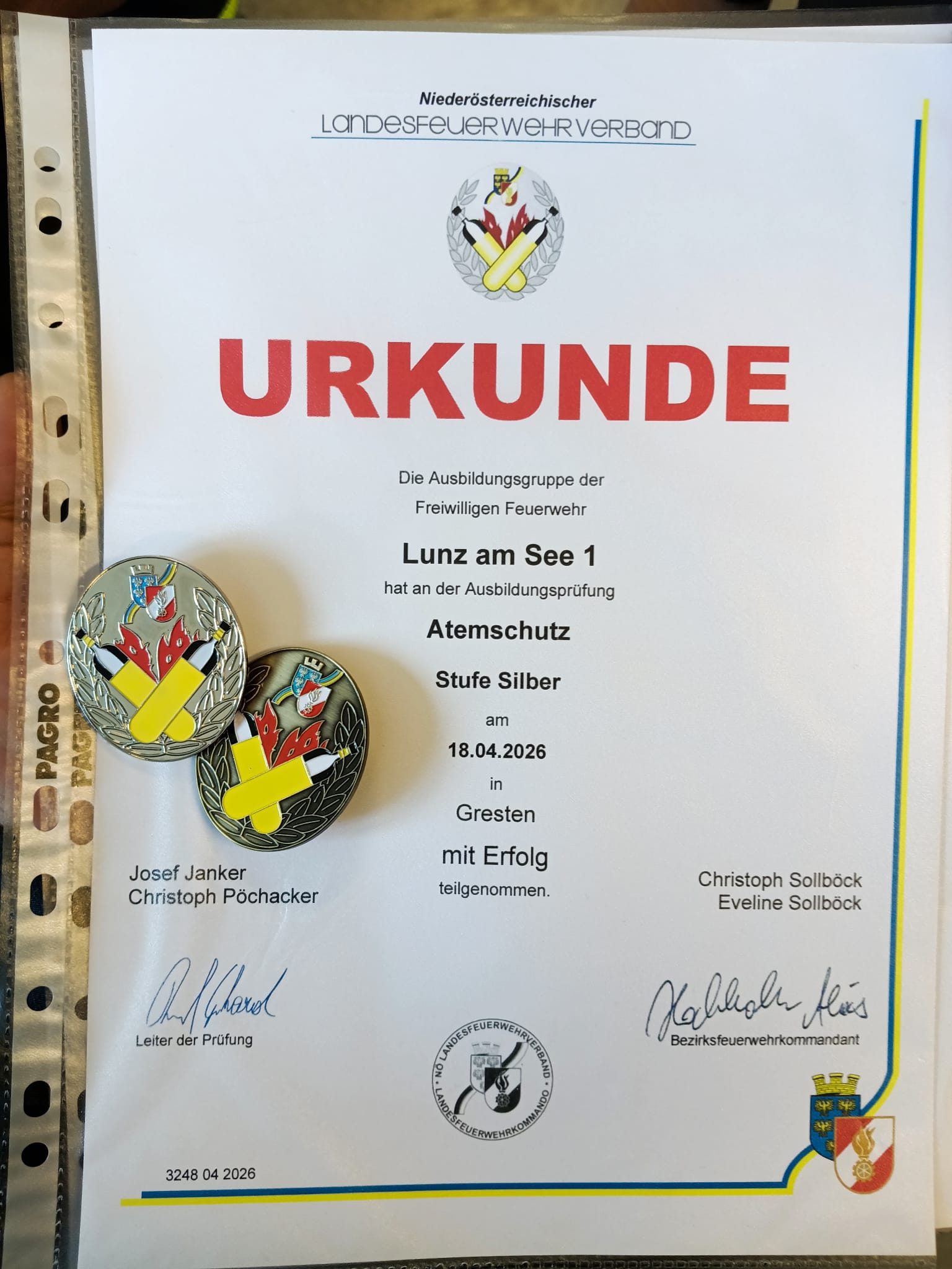 Wir gratulieren allen Teilnehmern für die tollen Erfolge und bedanken uns bei der freiwilligen Feuerwehr Gresten für die Abhaltung und Organisation der Prüfung. Ein herzliches Dankeschön auch an Franz Bachler, der unsere Kameradinnen und Kameraden über mehrere Wochen betreut hat.
