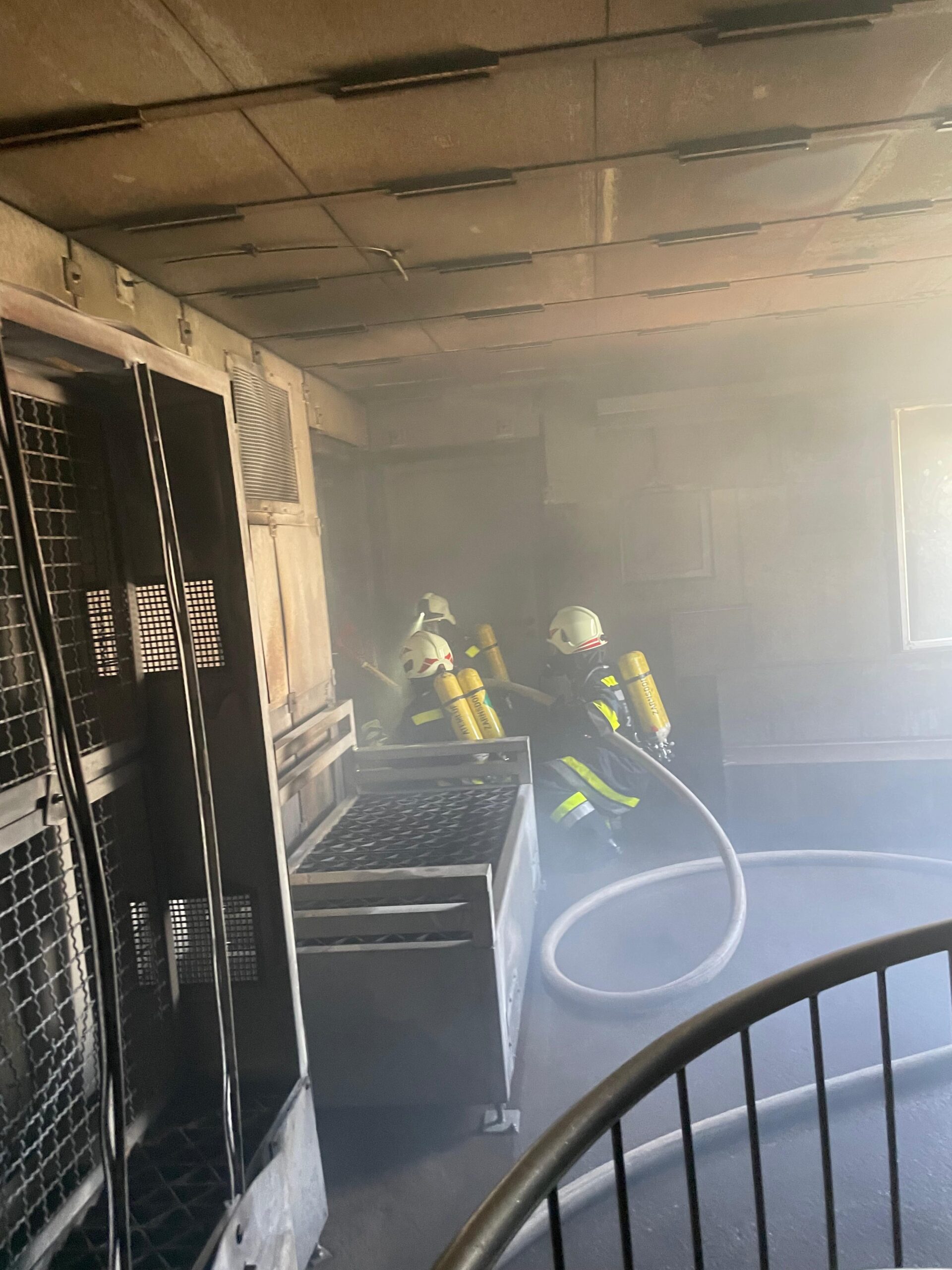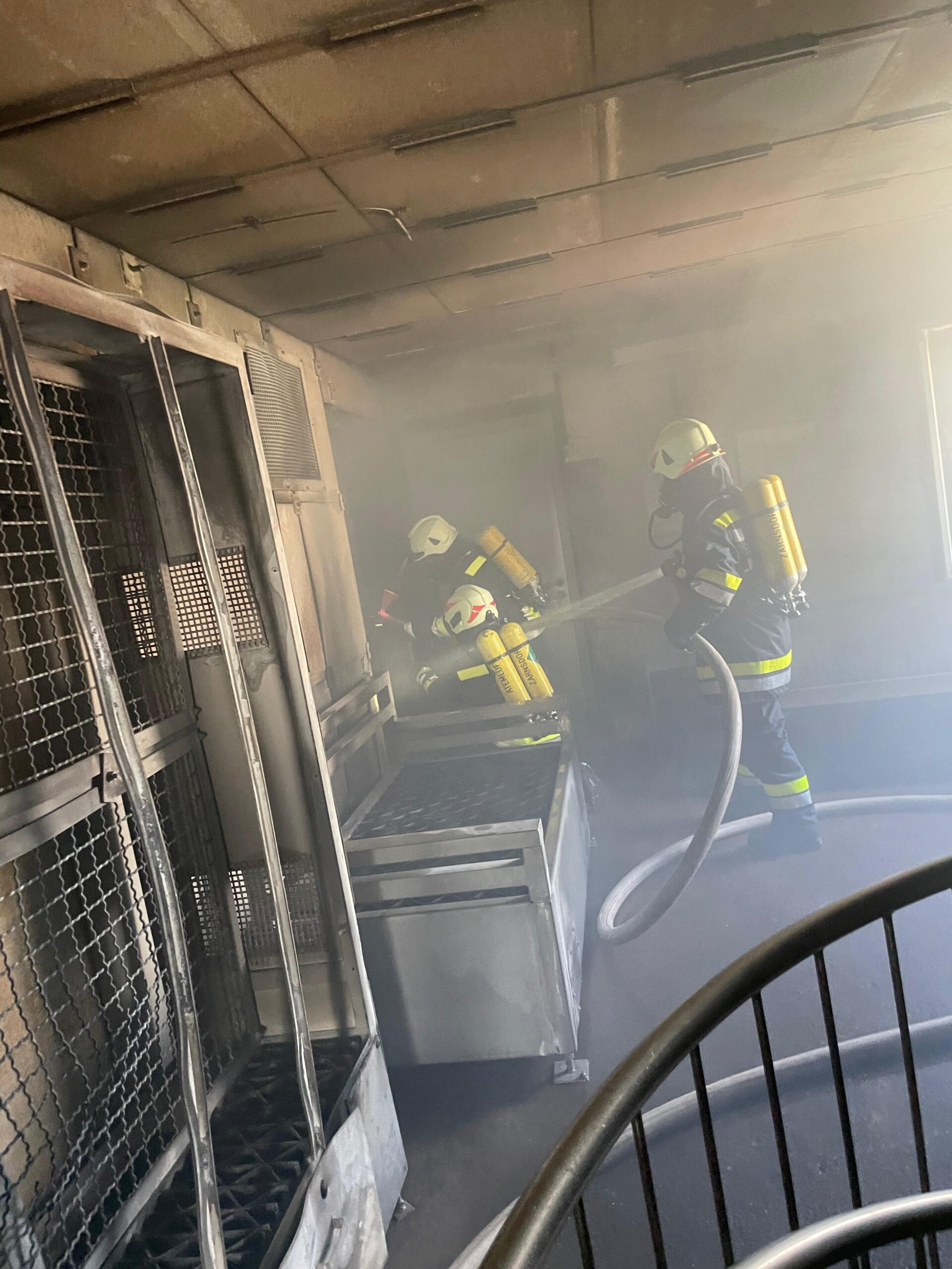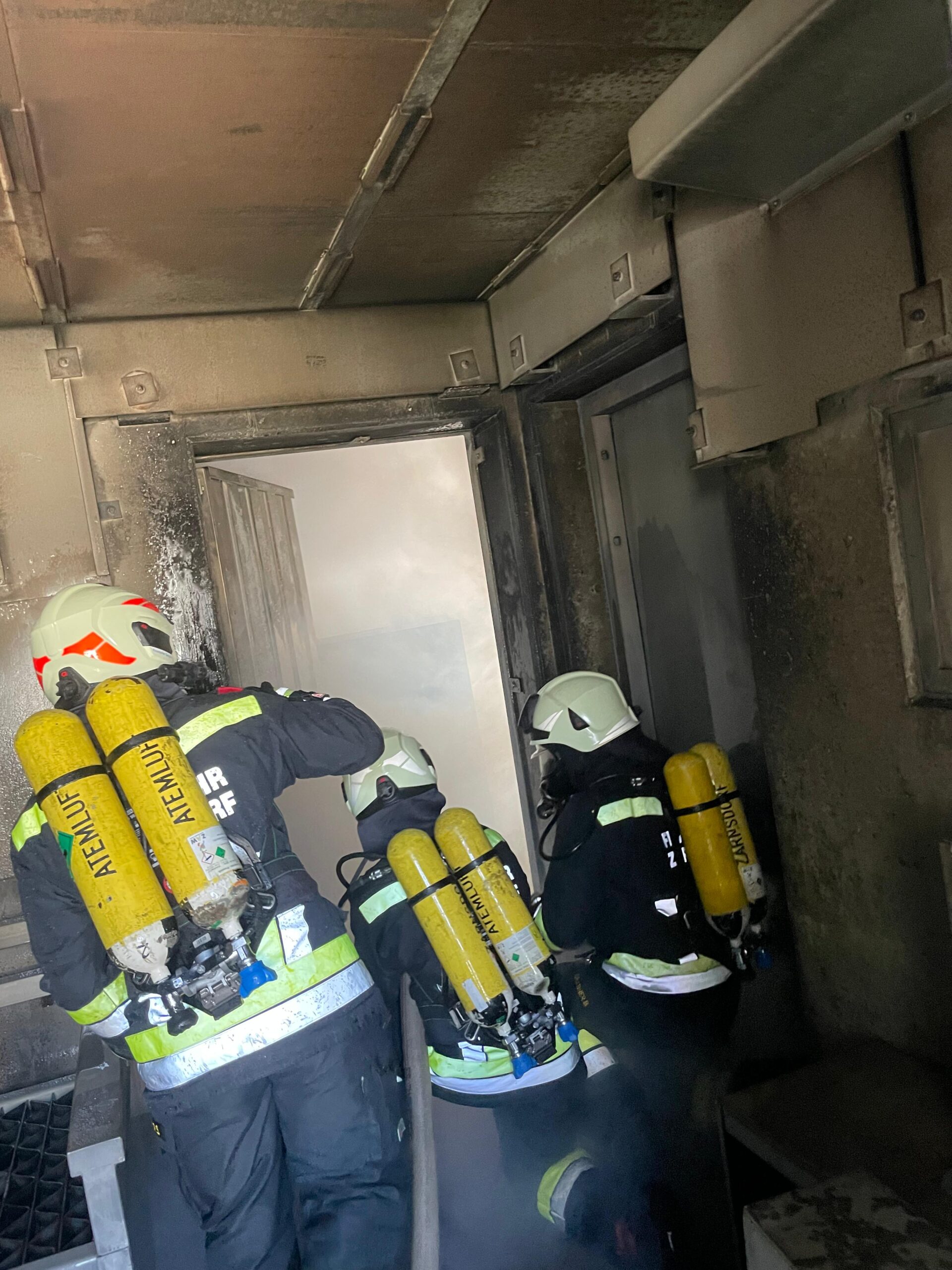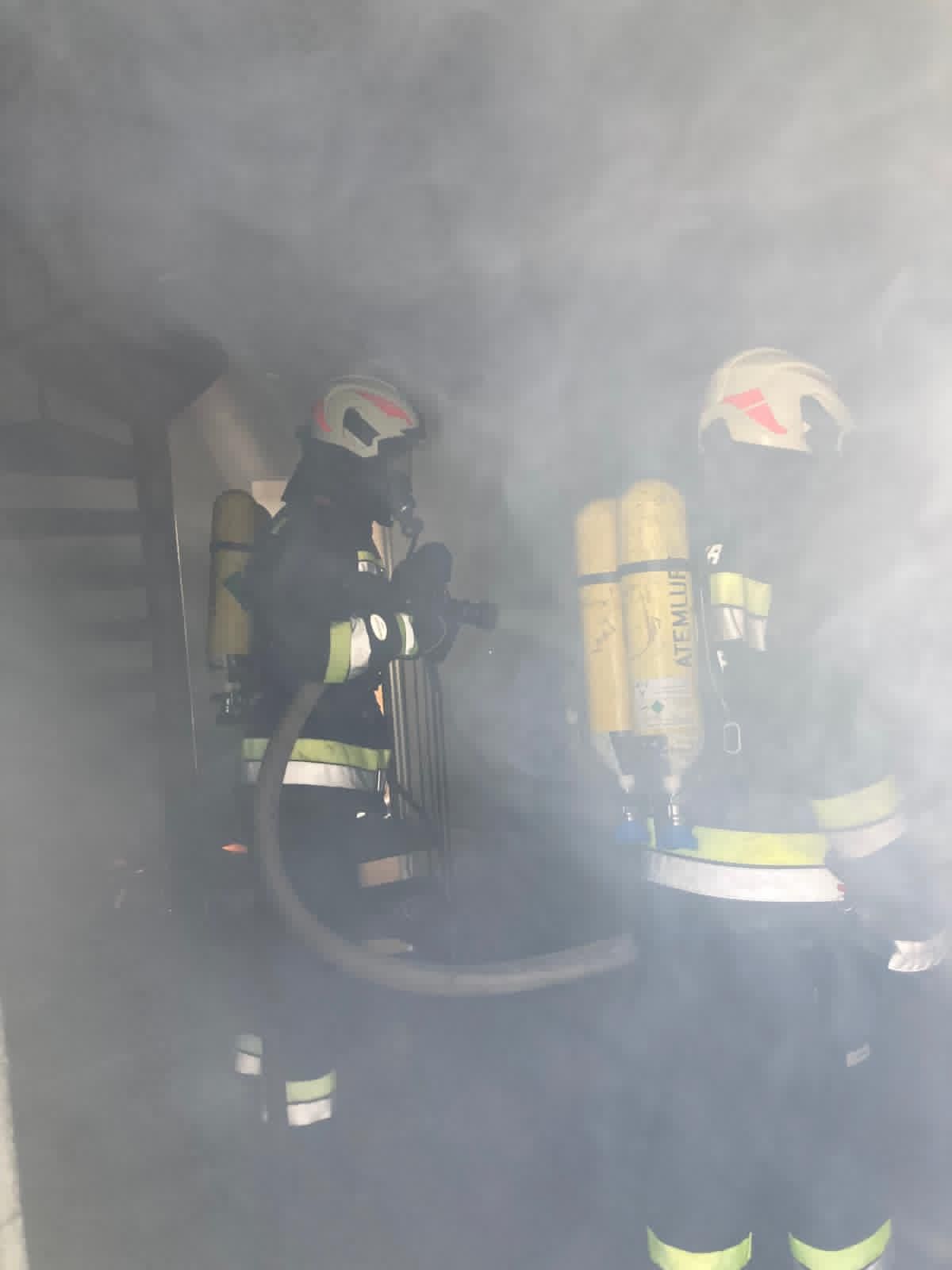 Insgesamt nahmen 10 Atemschutzgeräteträger teil, aufgeteilt in drei Trupps.