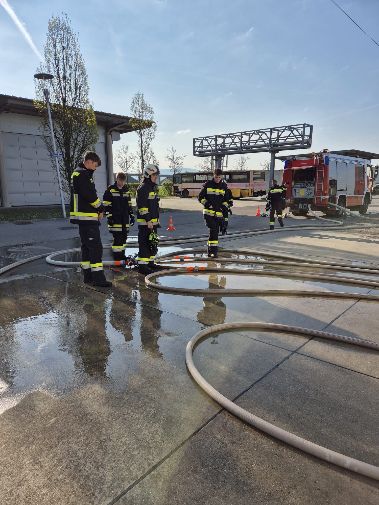 Unterstützt wurden die Trupps von weiteren Kameraden im Hintergrund – unter anderem im Feuerwehrmedizinischen Dienst, als Maschinist, beim Atemschutzsammelplatz sowie als Gruppenkommandant.